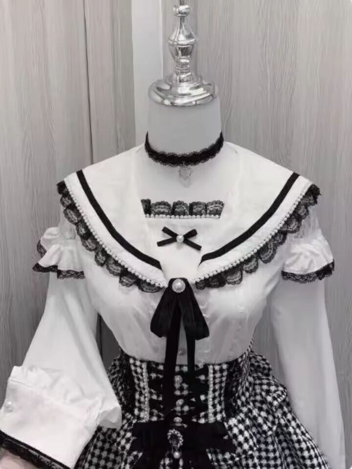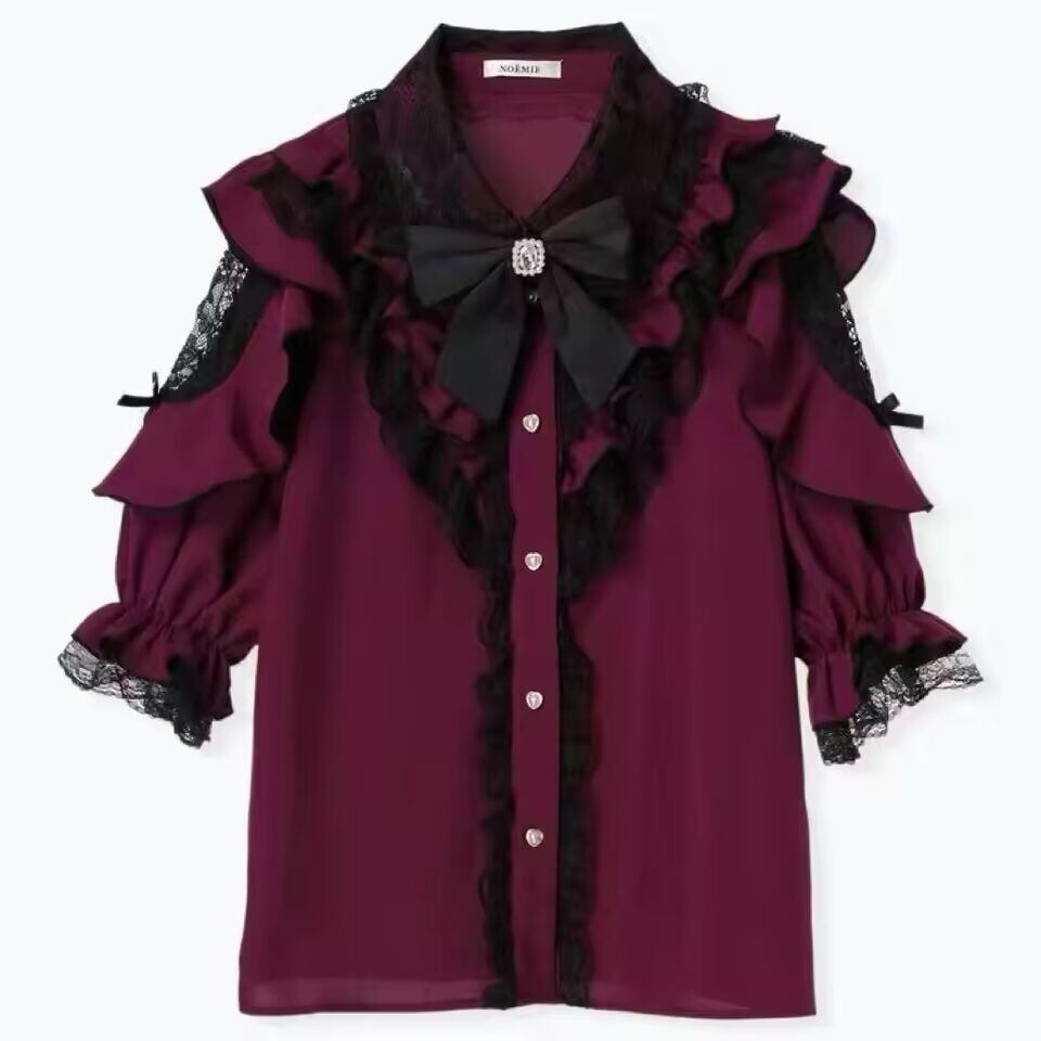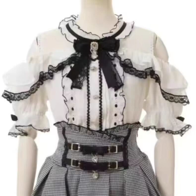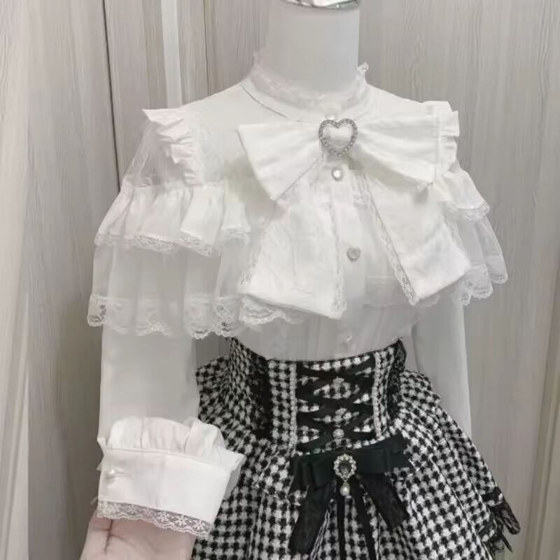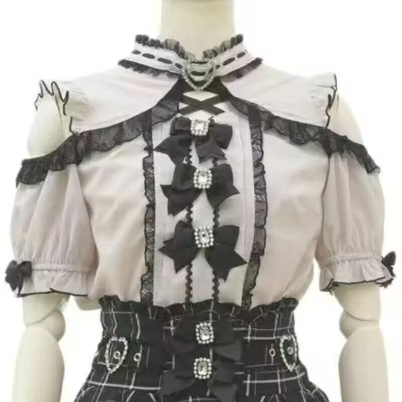 【送料無料◎】 日本のかわいいレースパッチワーク女性カジュアルブラウス原宿甘いシャツ JK 弓トップス & Tシャツ 2025 ファッション新