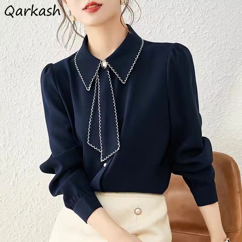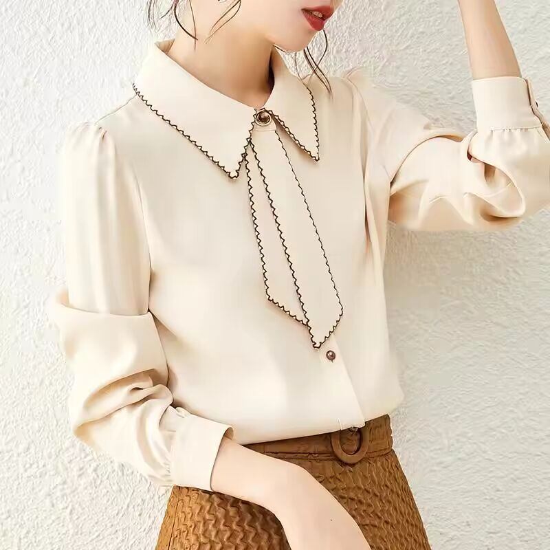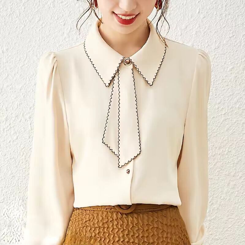 【送料無料◎】 S-3XL スマートシャツ女性リボン Cozyy オールマッチ作業服ベーシックパッチワークシフォン入札フレンチオフィスビジネス服エレガント