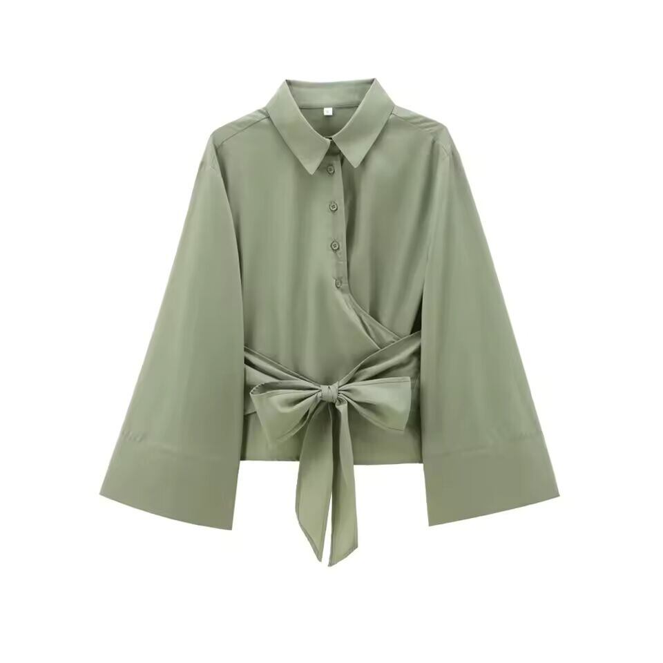 【送料無料◎】 女性用長袖着物ブラウス、蝶ネクタイ付き、前ボタン、女性用シャツ、シックなトップス、ファッション