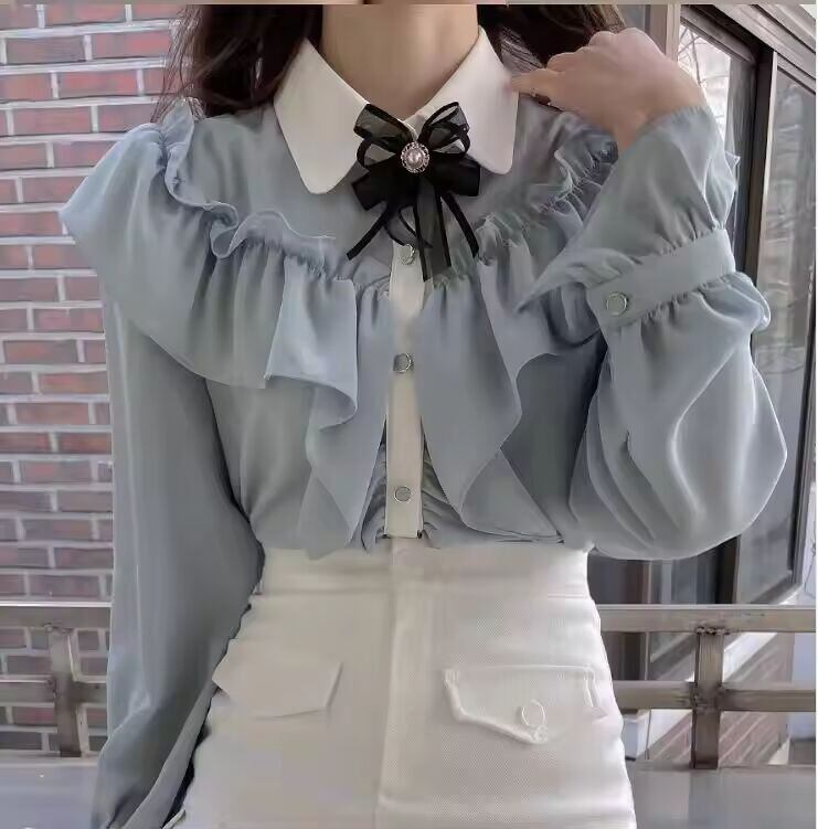 【送料無料◎】 2025年 フェアリープリンセスデザイン ガールズ ウィメンズ ラッフル ドットシャツ リボン 蝶ネクタイ キュート ジャパン プレッピースタイル トップス ブラウス