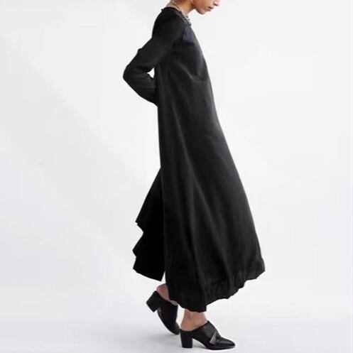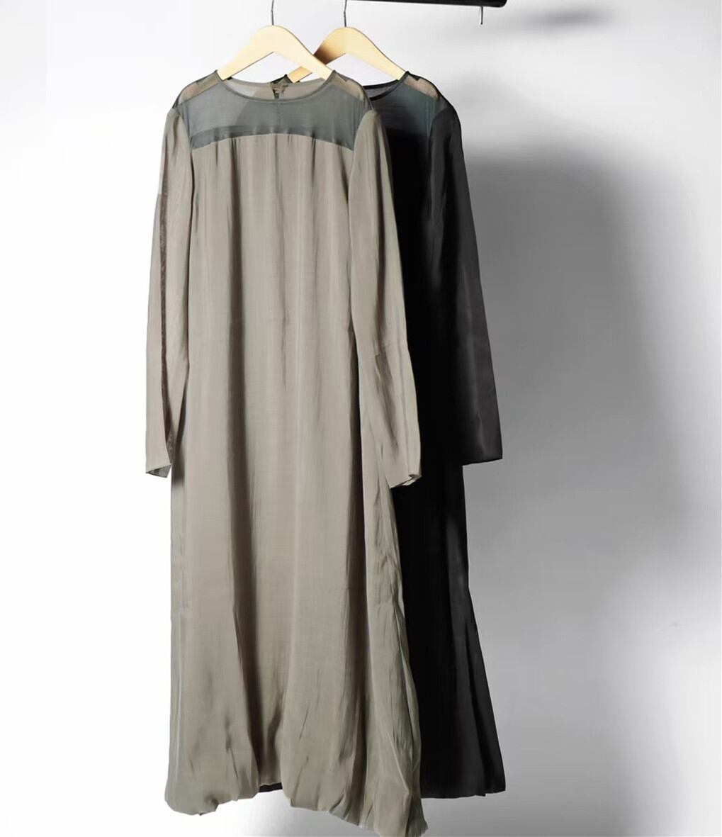 ◎【送料無料】秋冬新作 ワンピース レディース ロングワンピ ラウンドネック マキシ丈ワンピース 体型カバー 異素材