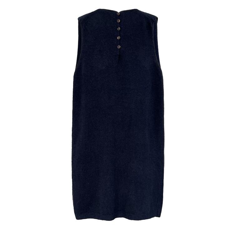 ◎【送料無料】2025秋ゆったりスタイルニットベストドレス 背中ボタンアクセント ラウンドネックノースリーブミディ丈
