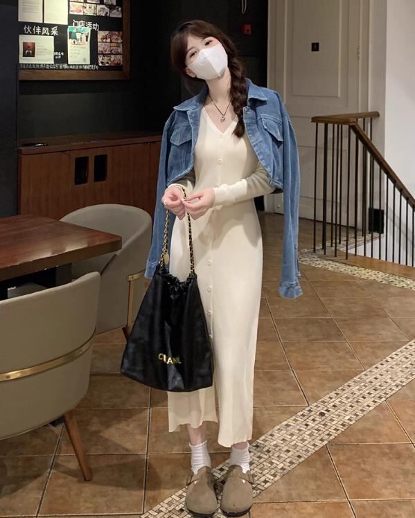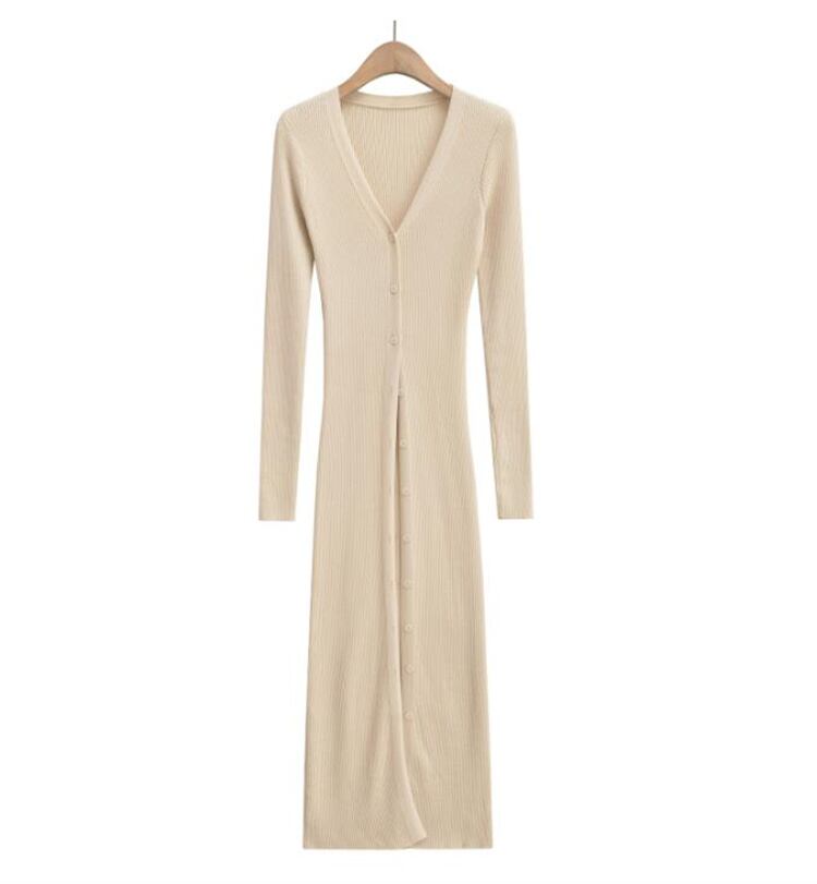 ◎【送料無料】オータム新作 レディースニットドレス 長袖Vネック フィットカット 日差しから守る 上品着用