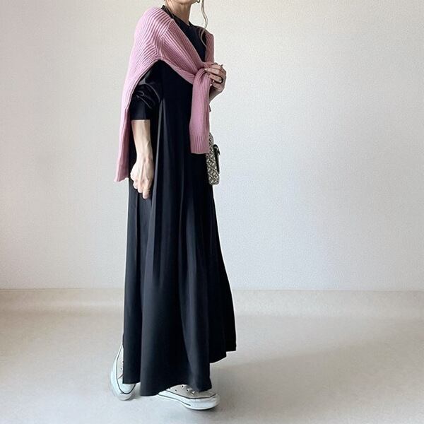 ゆったりとしたデザインで体型を自然にカバーしながらもスタイリッシュな印象を与えます。