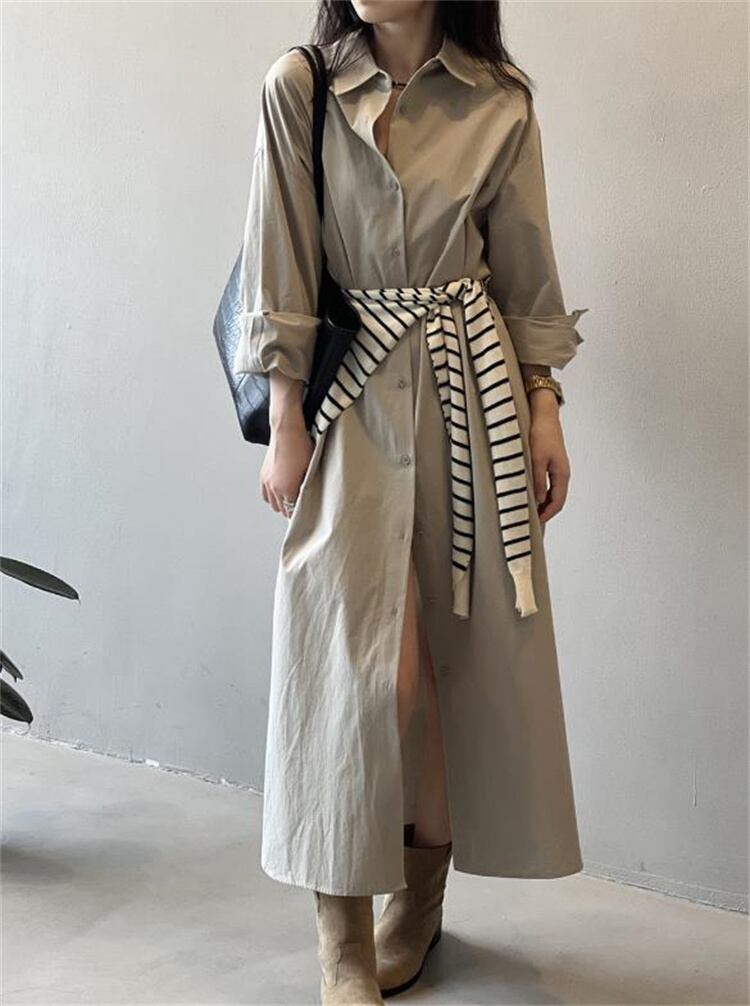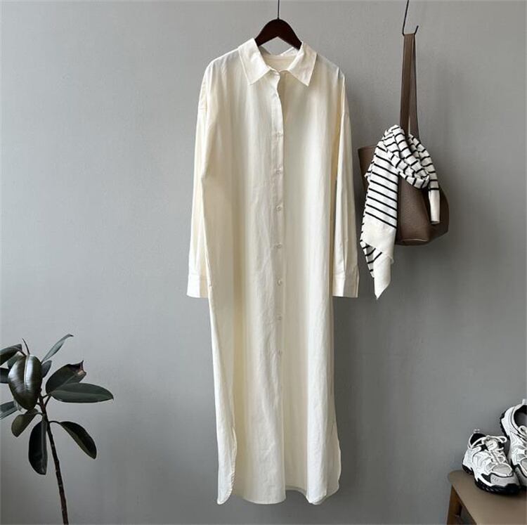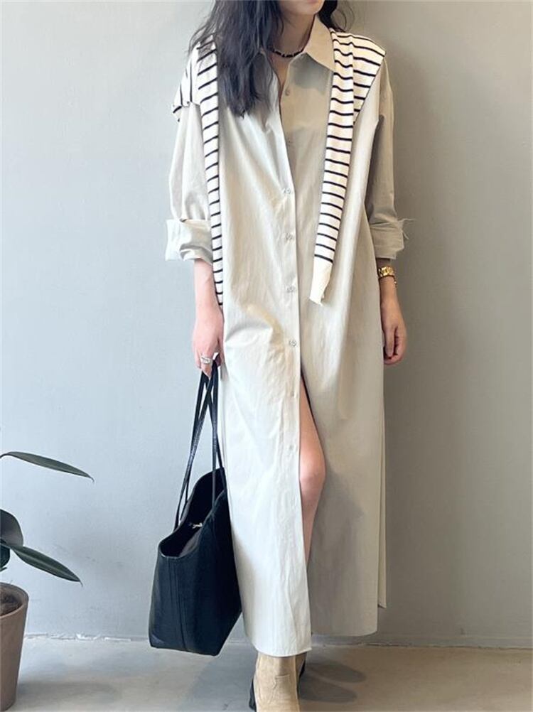文芸テイストのロングワンンピ 裾スリットで動きやすく ゆったりシルエット秋用
