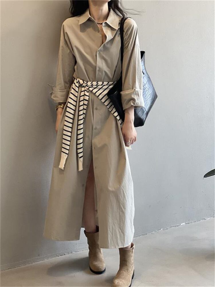◎【送料無料】文芸テイストのロングワンンピ 裾スリットで動きやすく ゆったりシルエット秋用