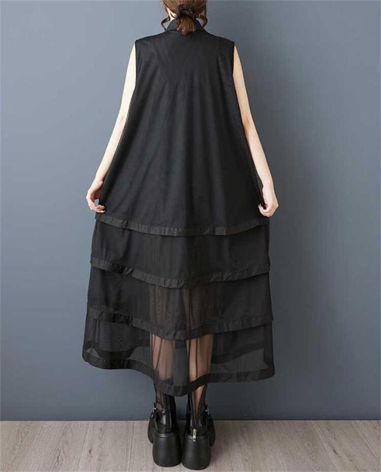 夏物 大きいサイズ 無袖ワンピース ゆったり仕立て ネットレース継ぎ レイヤードスカート