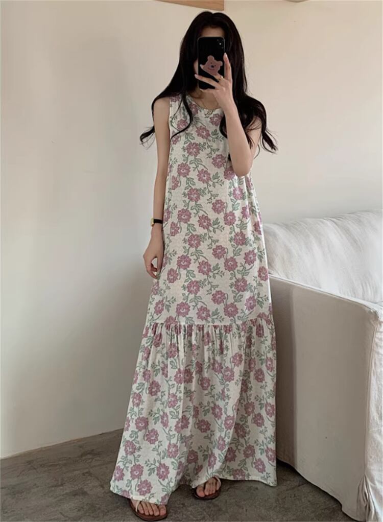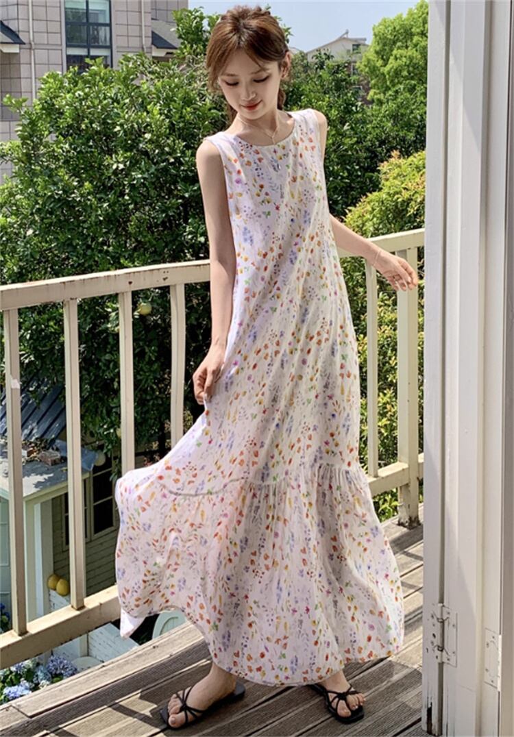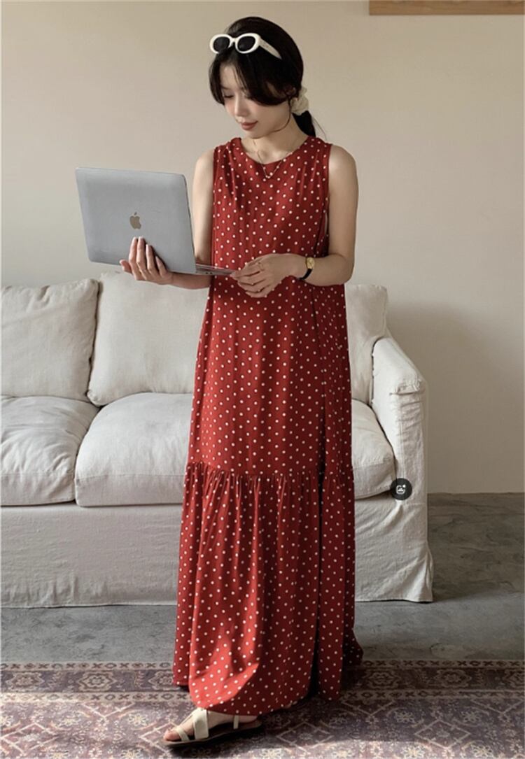 2025年 春夏 コットンシルク ノースリーブ 長裙 ホーム着