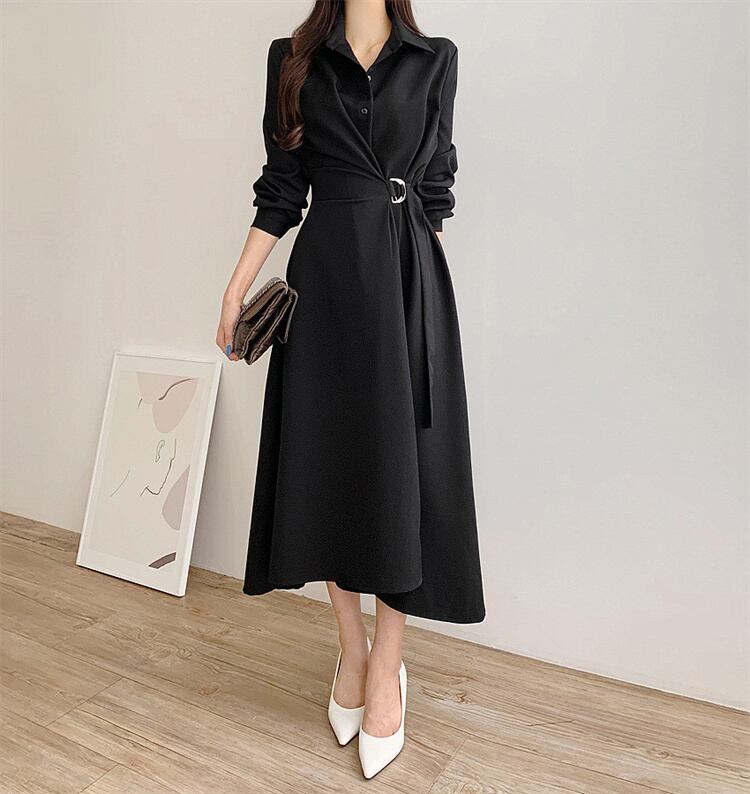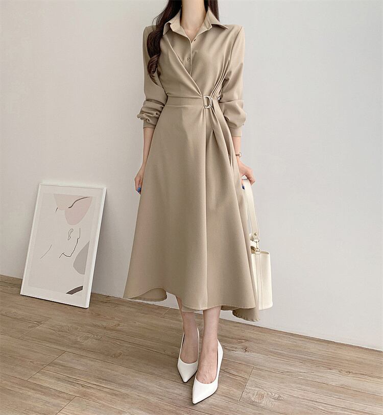 ◎【送料無料】ビジネス・デイト着用 ウエストシェイプ 長袖ワンピース リラックスフィット