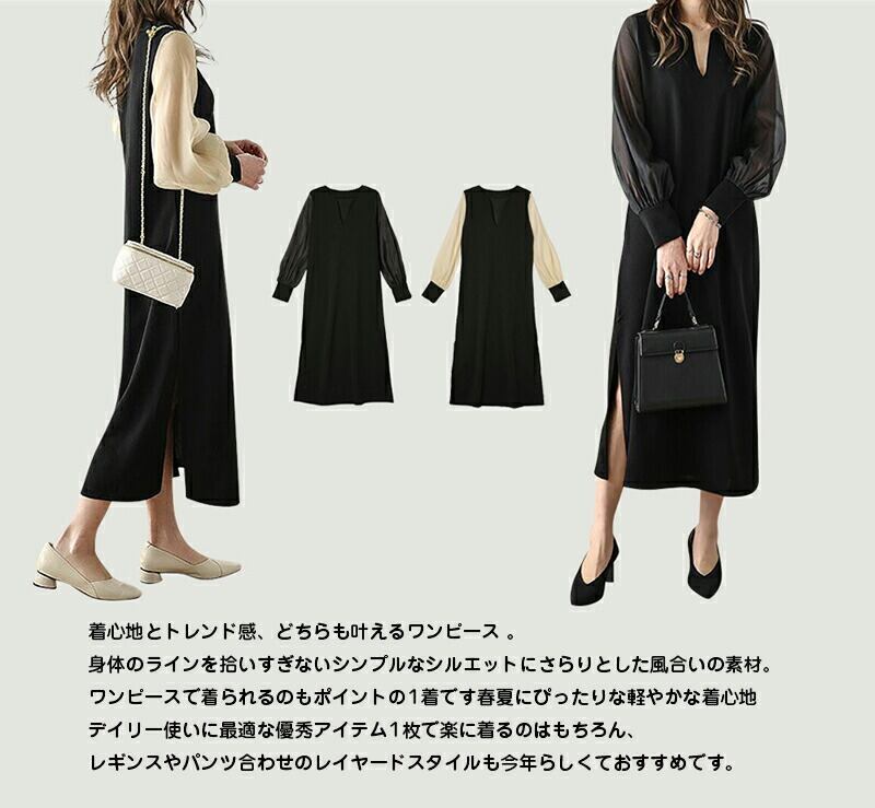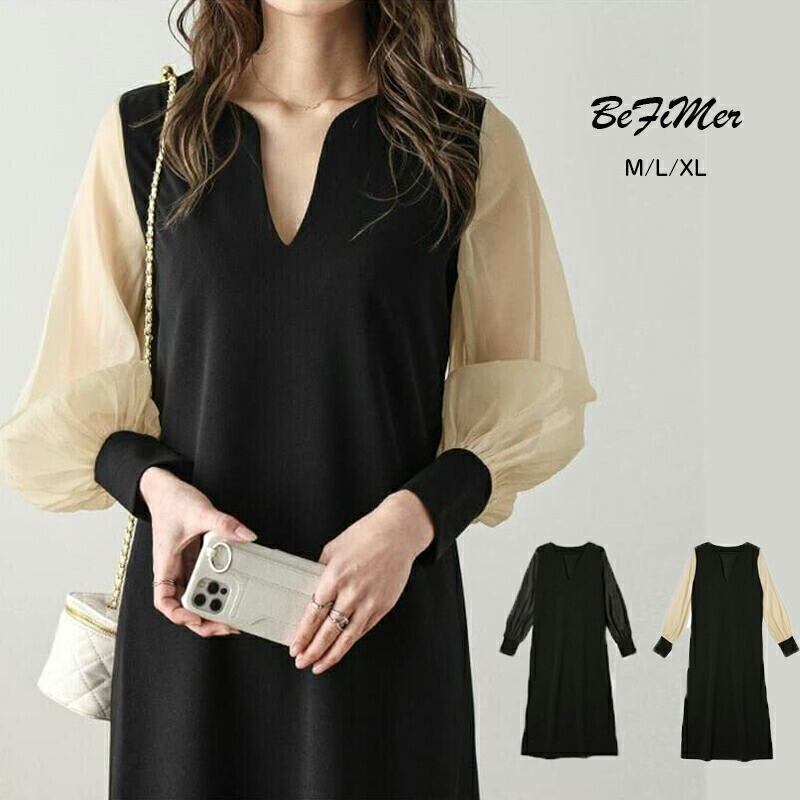 ◎【送料無料】【2025春秋新作】ワンピース レディース 春 夏 長袖 シフォンスリーブ 透け感 体型カバー