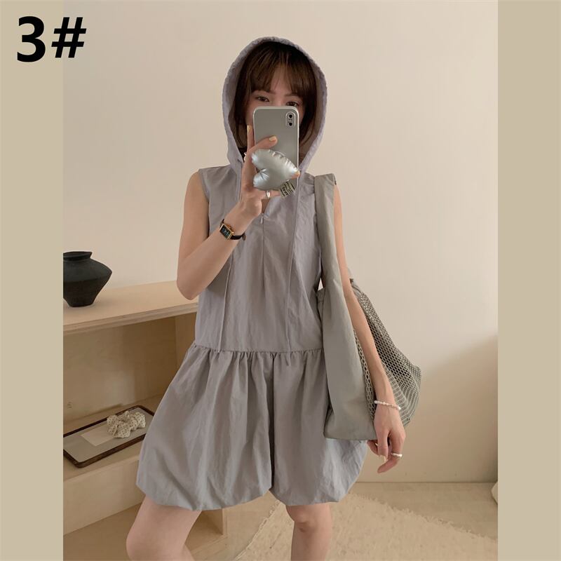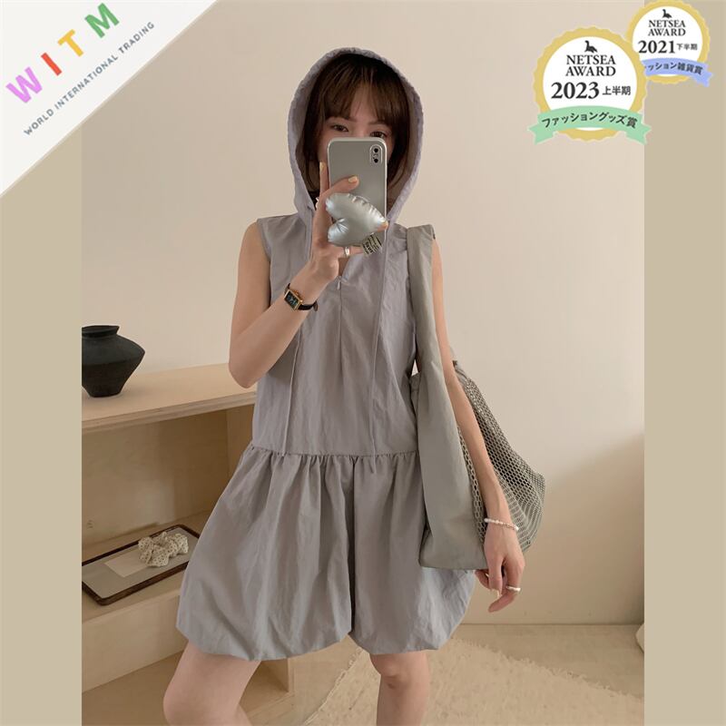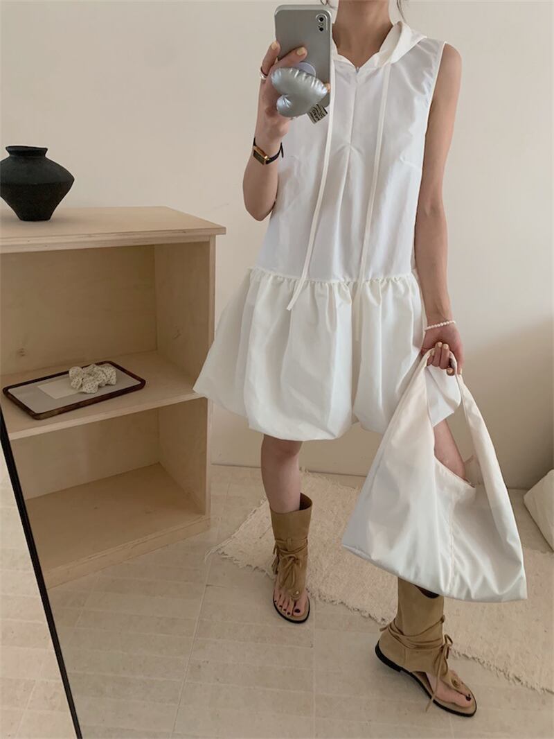 ◎【送料無料】ミニワンピース ノースリーブ 着回し フード付き 体型カバー レディース服 カジュアル