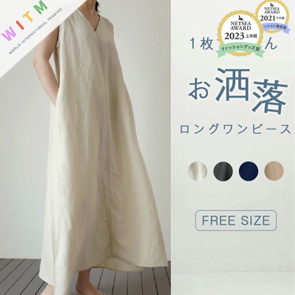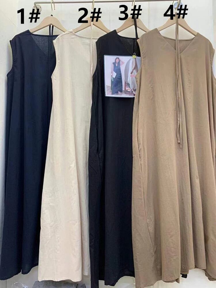 ◎【送料無料】Vネック ワンピース ロングワンピース ノースリーブ 袖なし 体型カバー レディース服 カジュアル 夏