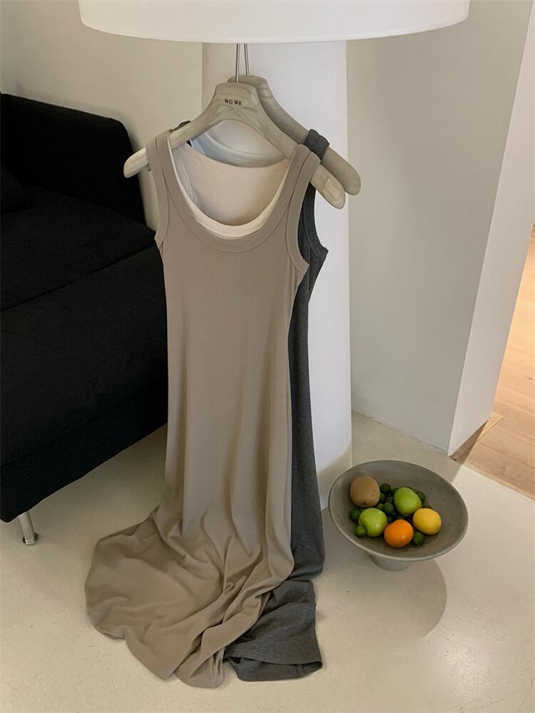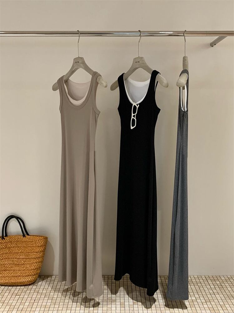 こちらは、シンプルでエレガントなデザインのノースリーブベストワンピース。通勤やオフィスカジュアルに最適な【ハイウエスト仕様】で、美しいシルエットを実現します。3色展開(ブラック/グレー/コーヒー)で季節を問わずコーディネート可能。ポリエステル素材を使用した軽やかな着心地で、春夏の暑さにも快適です。