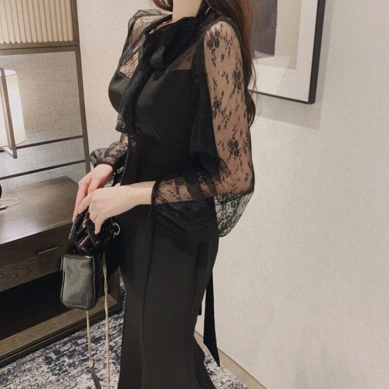◎【送料無料】ワンピース 姫系ワンピース ロング丈ワンピース レディース 異素材 気質 オシャレ