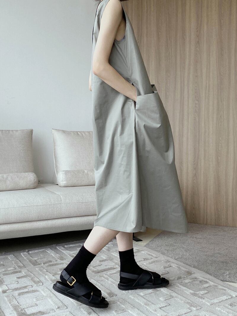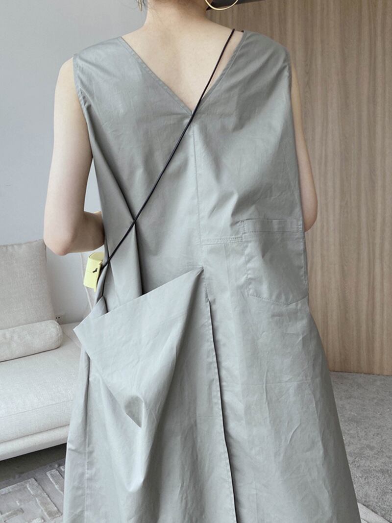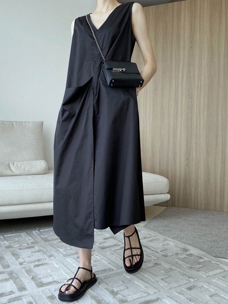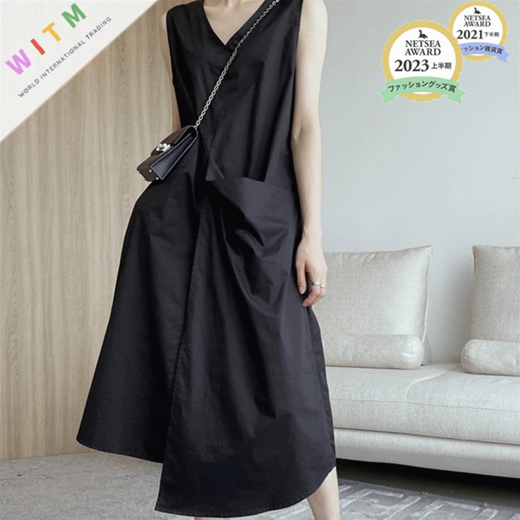 ◎【送料無料】2024春夏新作 Vネック ノースリーブ ワンピース 無地 着回しが利く 通学 通勤 ファッション