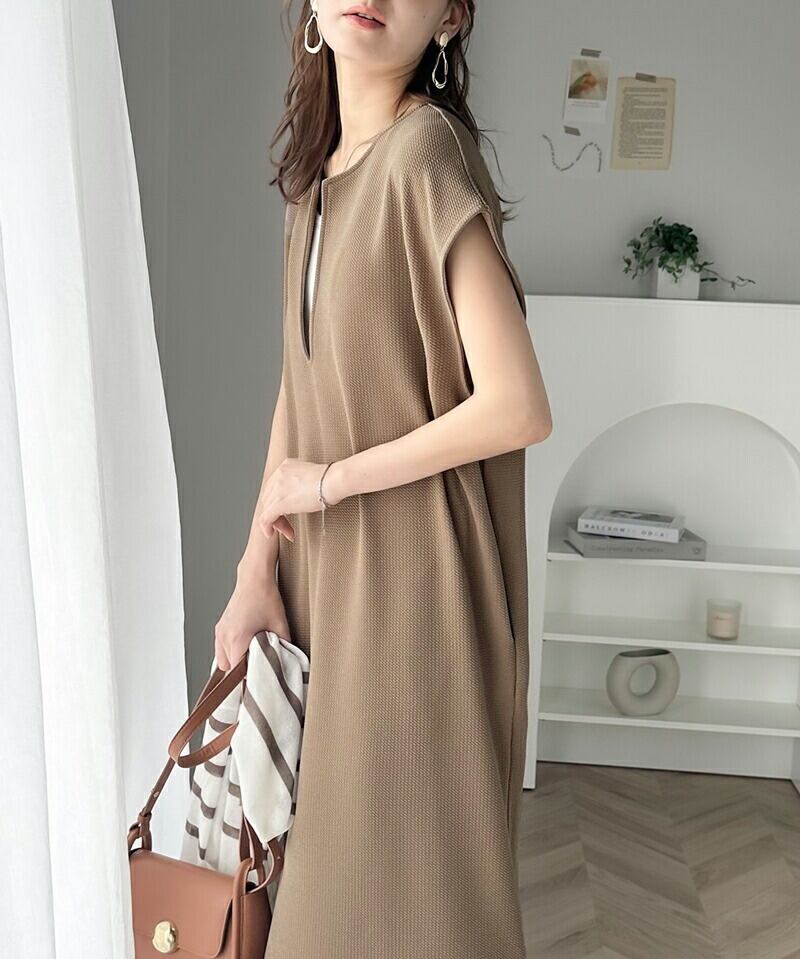 ざっくりと着れて、1枚でサマになるウール見え素材のワンピース。