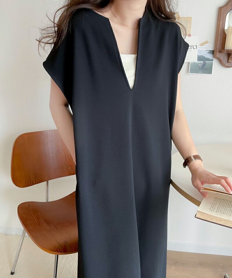 ほんのりタイトめなIラインシルエットが、ゆったりながらも体形をきれいにカバーしてくれます。