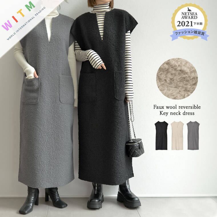 秋冬にピッタリな素材のワンピースは今季注目のアイテム。