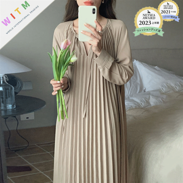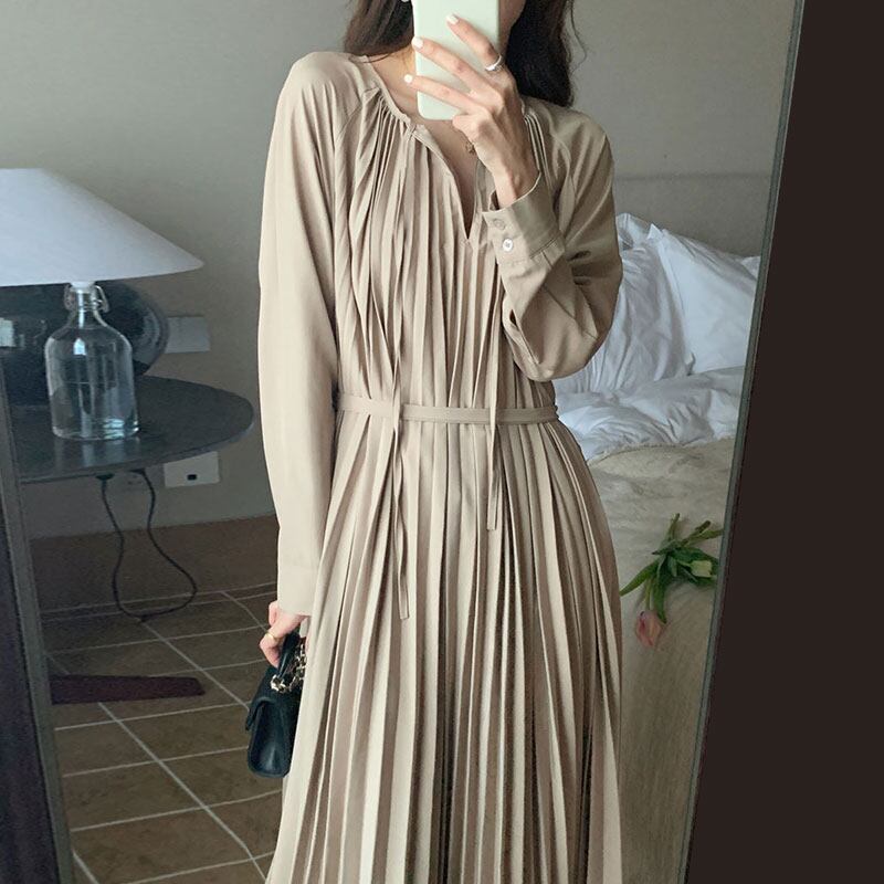 ◎【送料無料】2023秋新作 ワンピース 長袖 Vネック レディース 着回し 体型カバー 大人の魅力