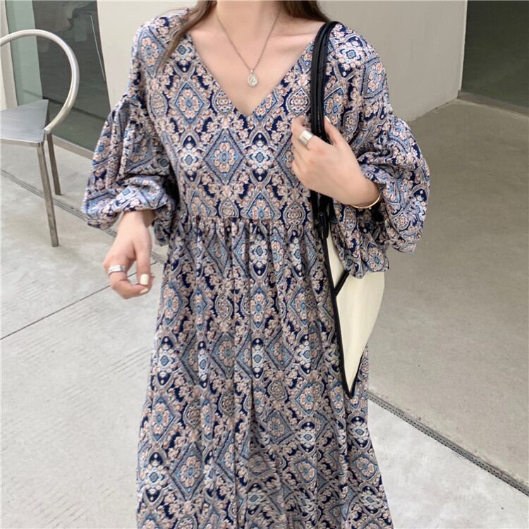 ◎【送料無料】ワンピース レディース きれいめ ロングワンピース マキシワンピース 花柄 ロングワンピ Vネック