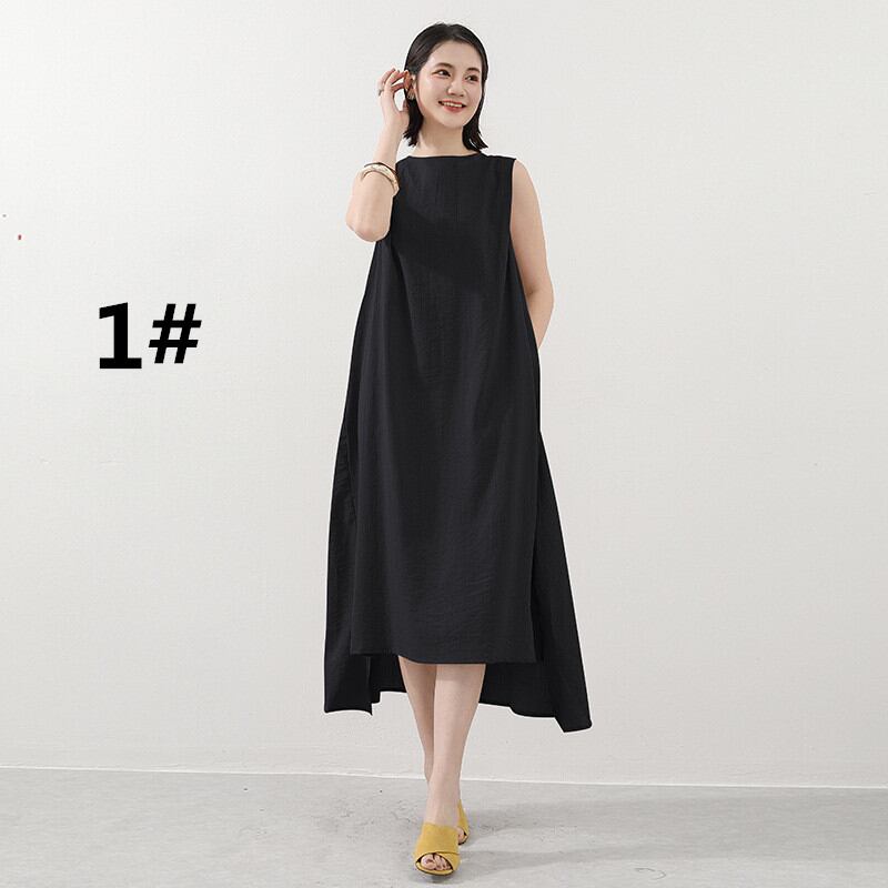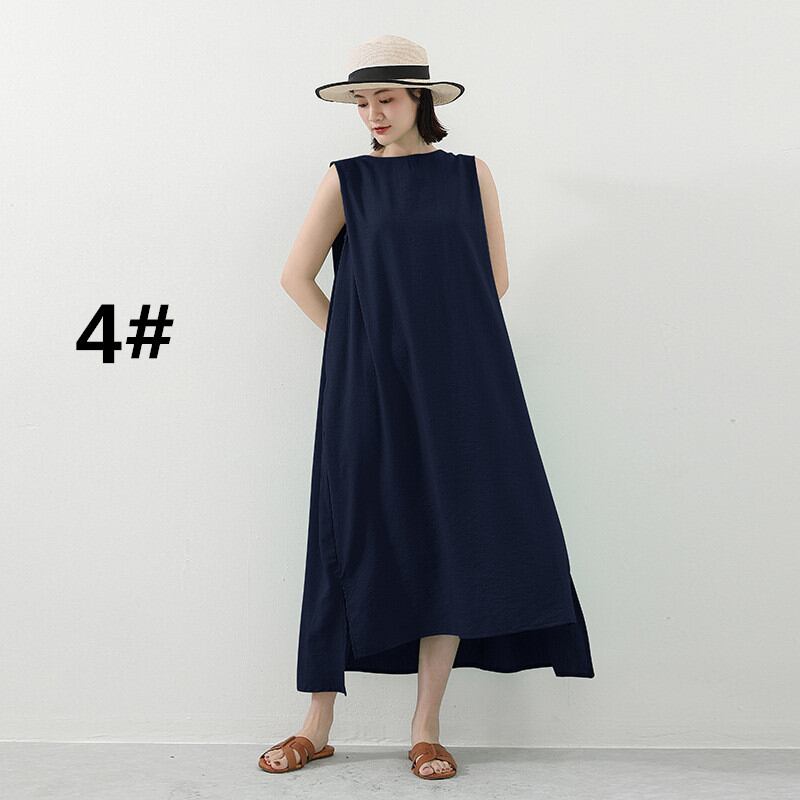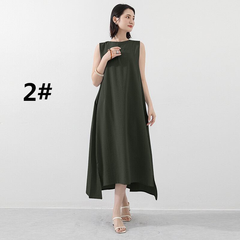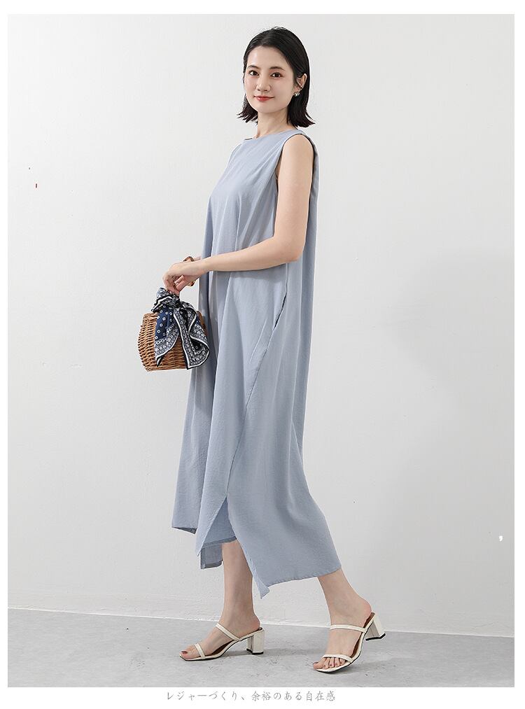 ◎【送料無料】ワンピース 夏 ノースリーブ きれいめ ロング丈ワンピース レディース リネン風 体型カバー ラウンドネック