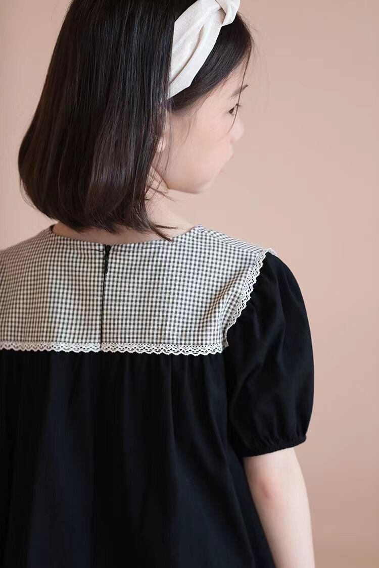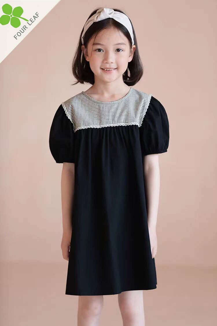 ◎【送料無料】ワンピース パワション チェック柄 ウンドネック 女の子 通気性 キッズ 子供服 エレガント 110-150cm