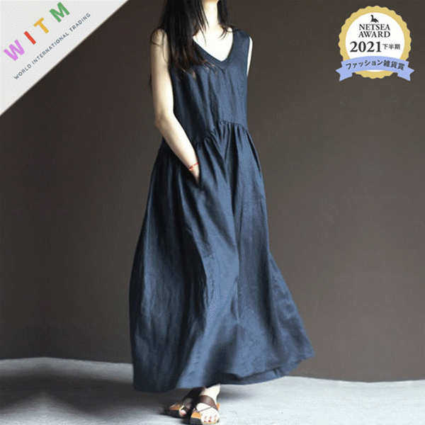 ◎【送料無料】2023夏新作 ワンピース 韓国風 Vネック ノースリーブ 体型カバー 大人可愛い レディース