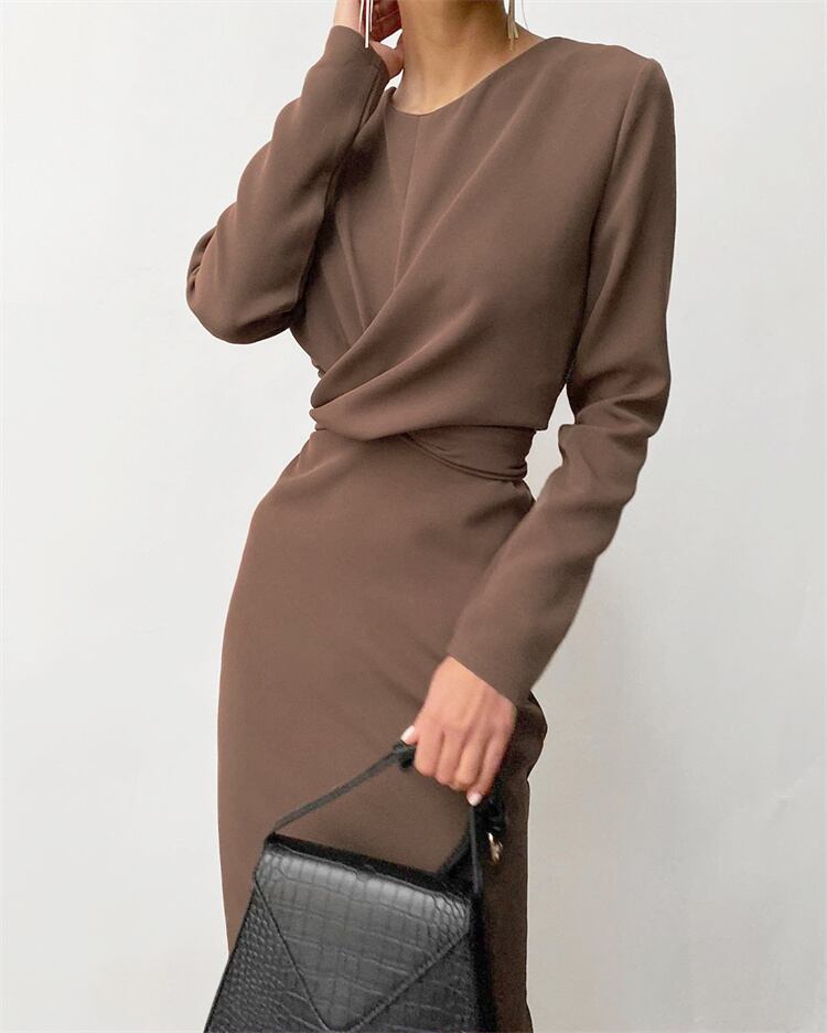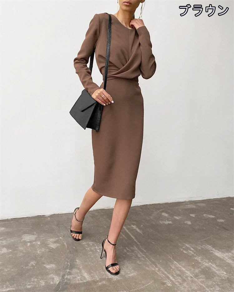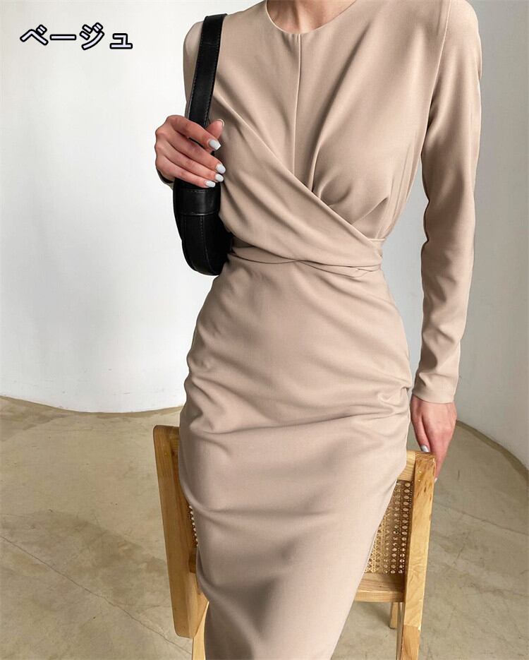 新品 ロングスカート タイトスカート スリム 快適である ギャザリング 長袖 受け取って腰