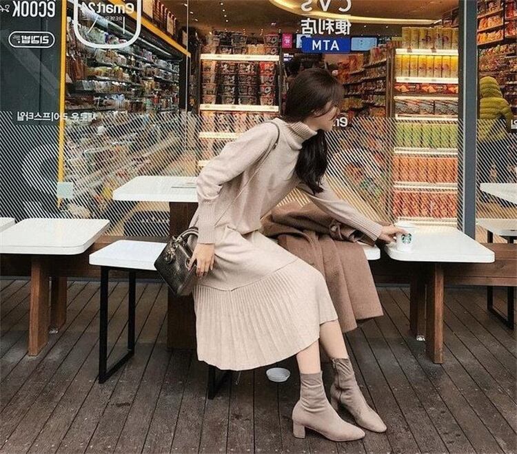 ◎【送料無料】更にエレガントデザイン追加 セータードレス ニットワンピース ロングスカート 長袖 秋と冬 怠惰な風