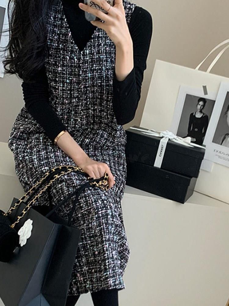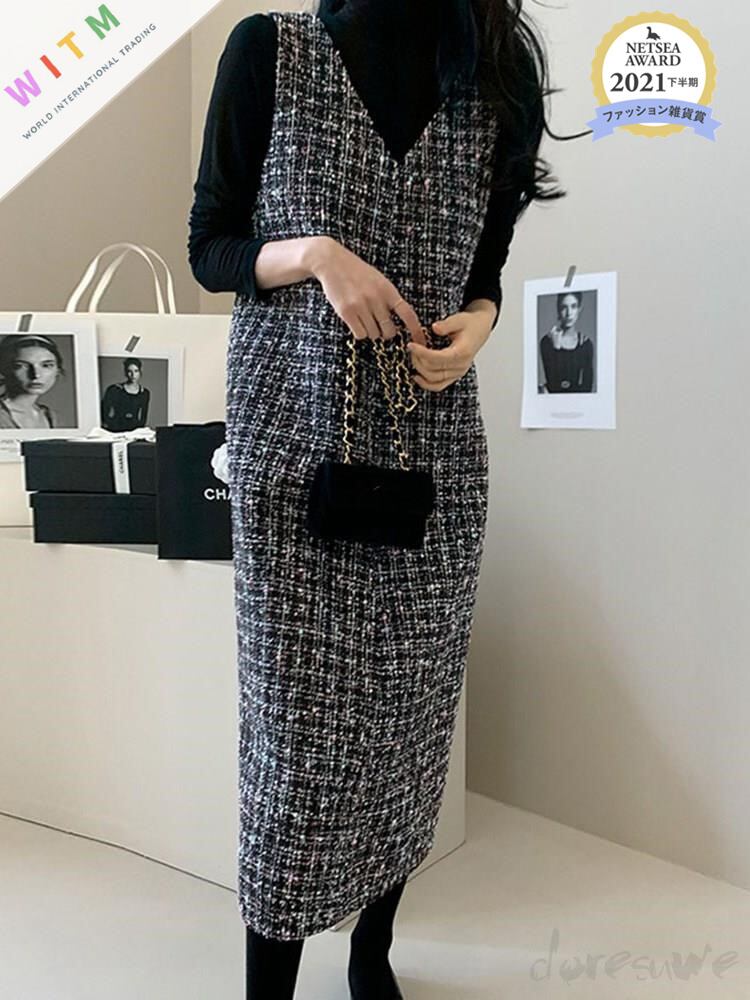 ◎【送料無料】2022秋冬新作 ベストワンピース ノースリーブ ワンピース Vネック レディース フォーマル 通勤 OL