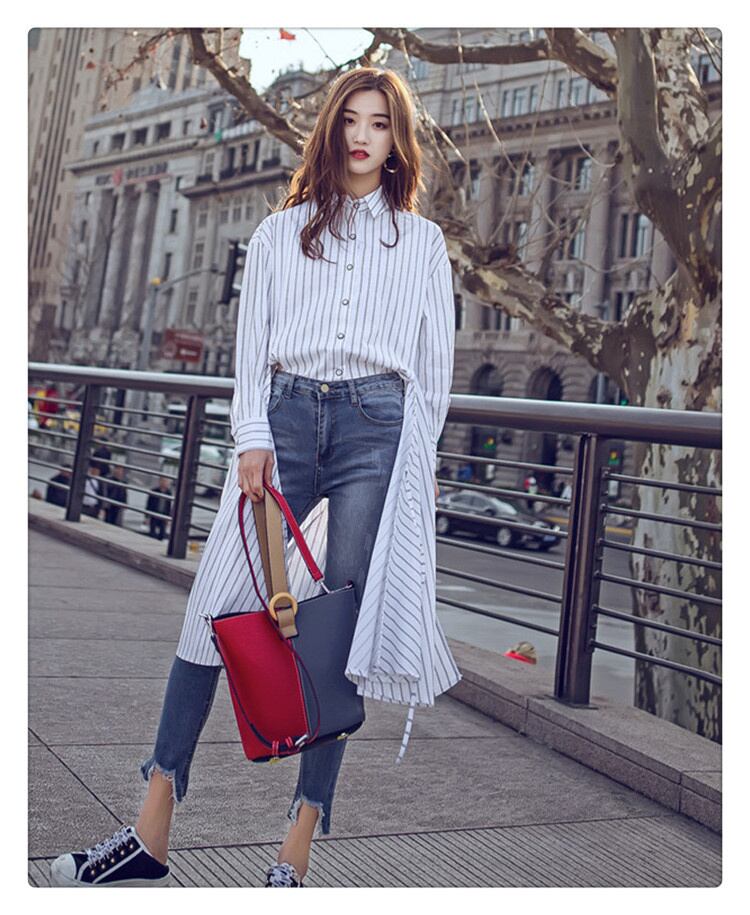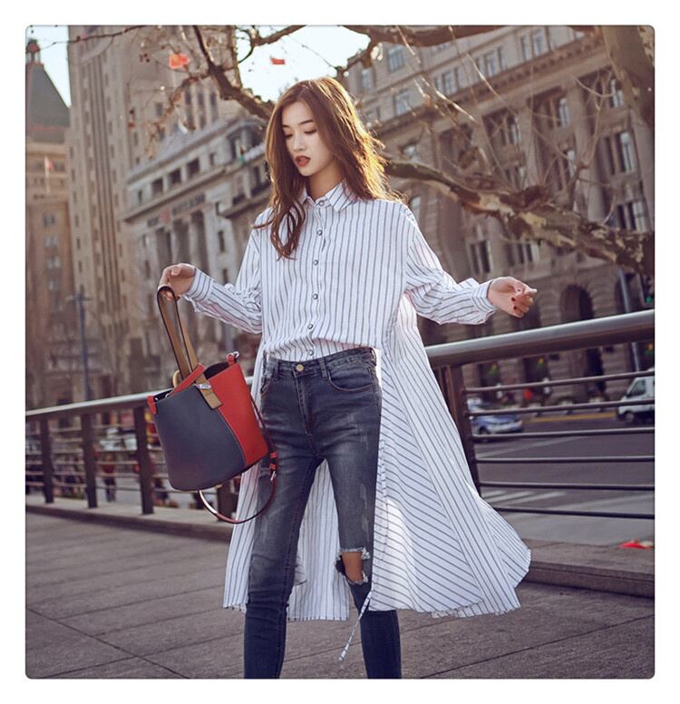 ◎【送料無料】シャツ ロングスカート 中長セクション イレギュラー シャツワンピ デザインセンス 秋 ストライプ