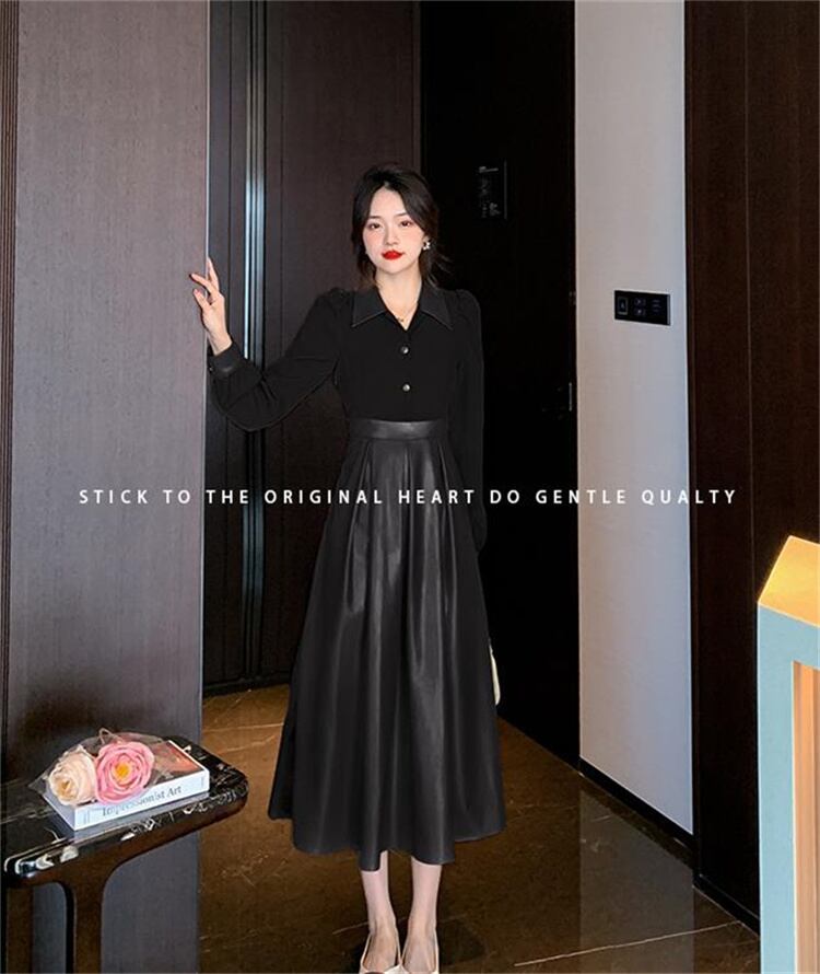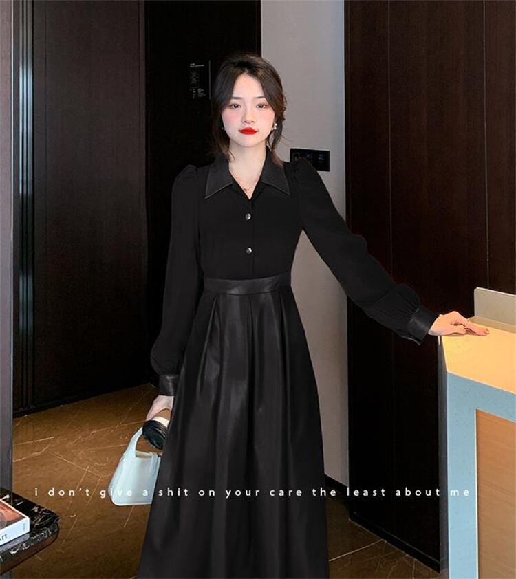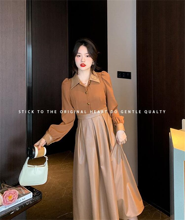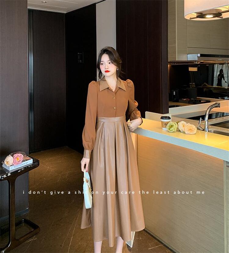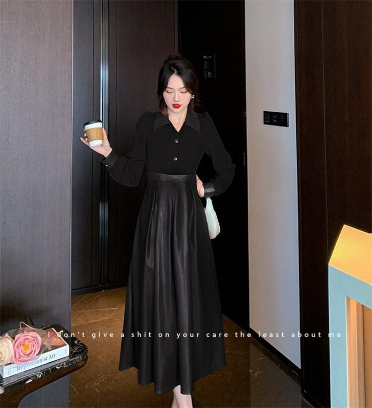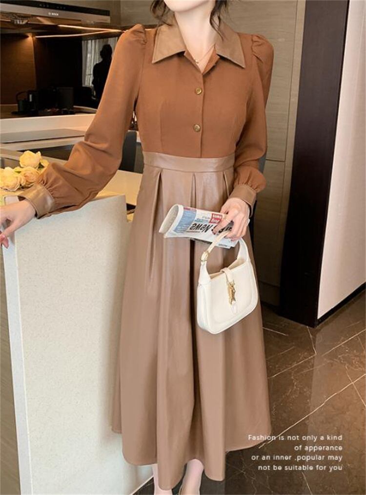 ◎【送料無料】ワンピース ピュアカラー 気質 お出かけ タイドファッション 縫付 長袖 レトロ スリム ロングスカート