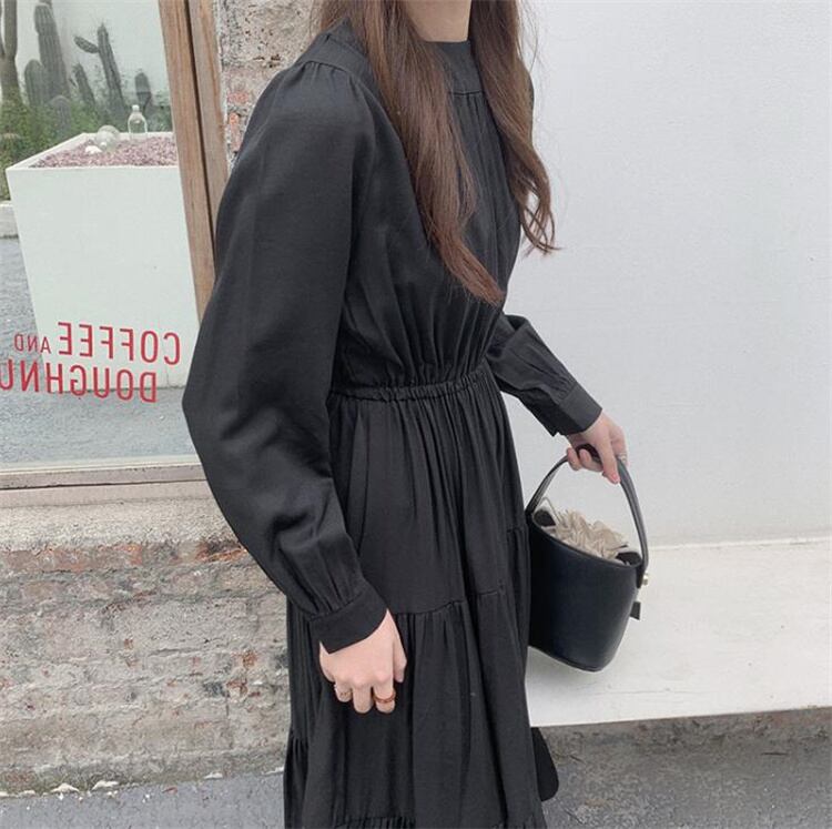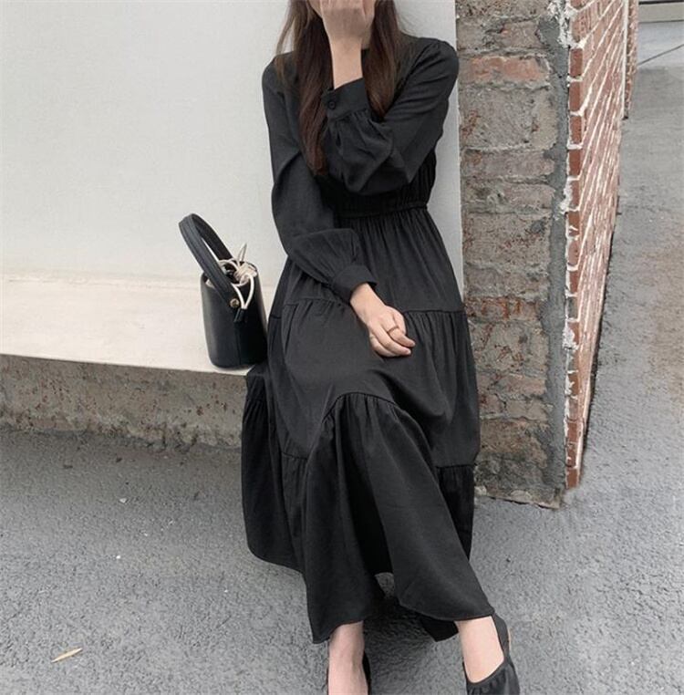 受け取って腰 大人気 デザインセンス 長袖 ワンピース ロングスカート ラウンドネック