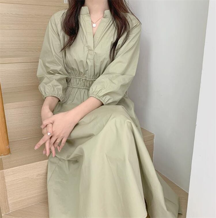 ◎【送料無料】Vネック 受け取って腰 ロングスカート エレガンス ワンピース 気質 シンプル