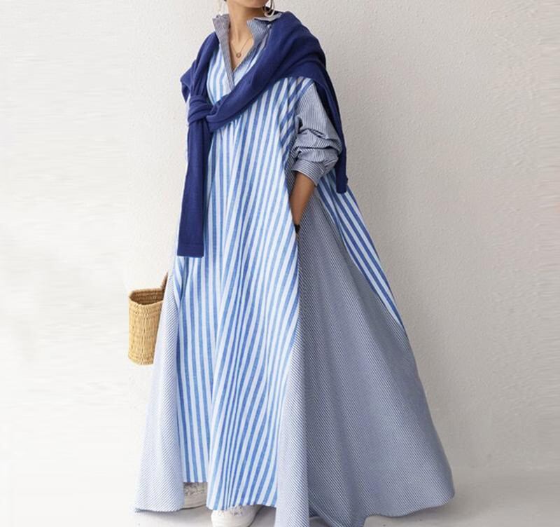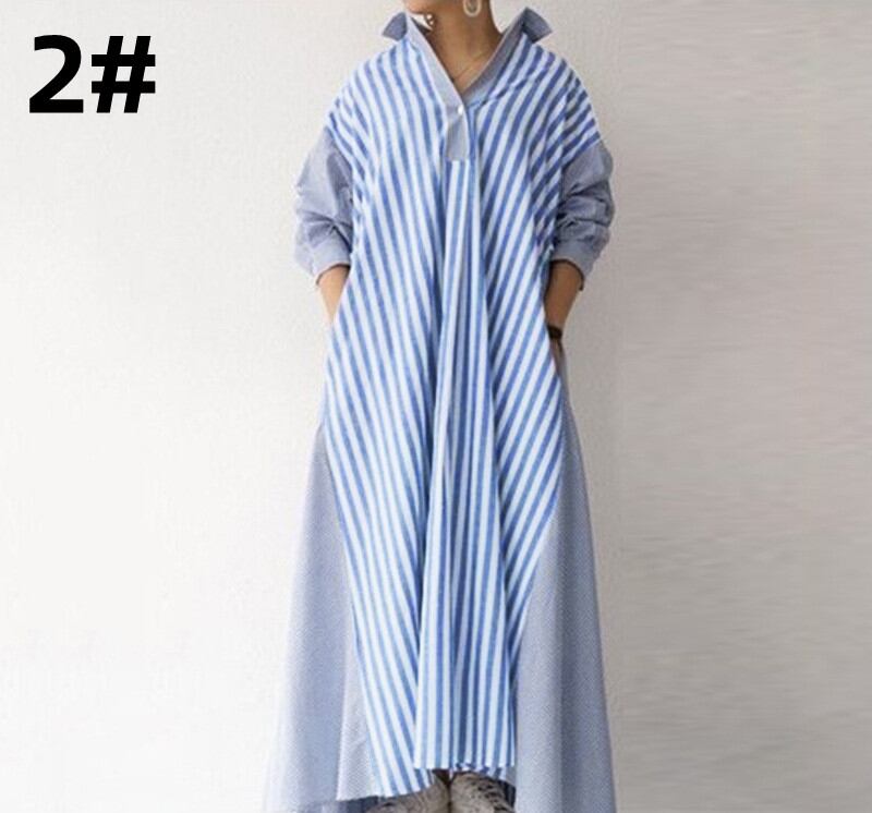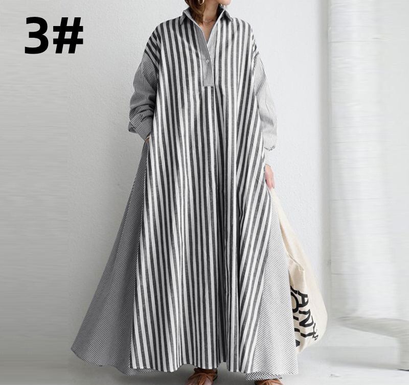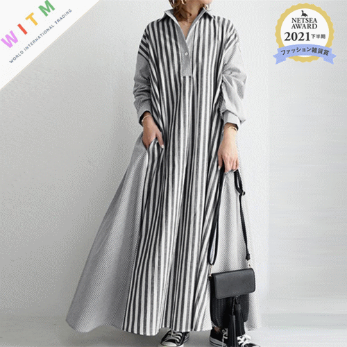 ◎【送料無料】ロングワンピース ワンピース 長袖 レディース 大きいサイズ 体型カバー 韓国風 カジュアル シンプル