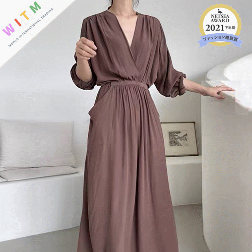 ◎【送料無料】2022秋冬新作 ワンピース ロング丈ワンピース Vネック 長袖 体型カバー 韓国風 レディース おしゃれ