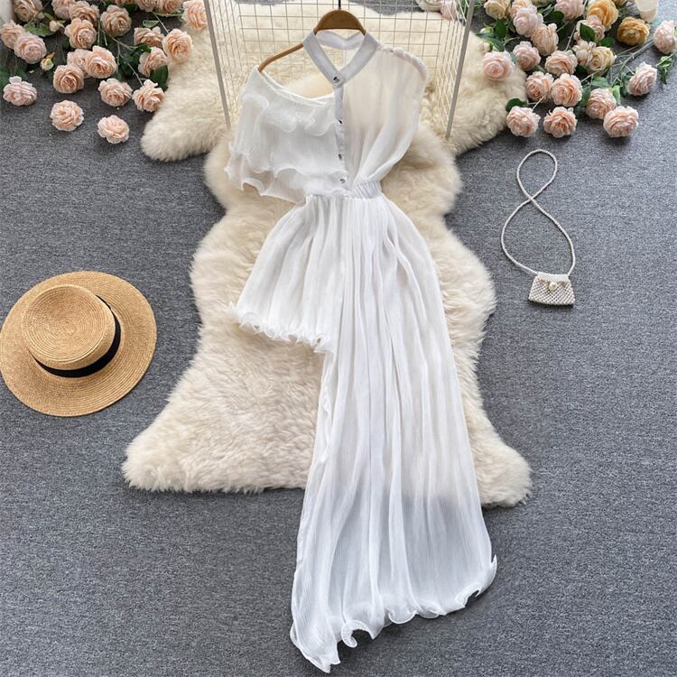 デザインセンス 快適である スリム sweet系 薄い フリル イレギュラー 気質 ワンピース ロングスカート