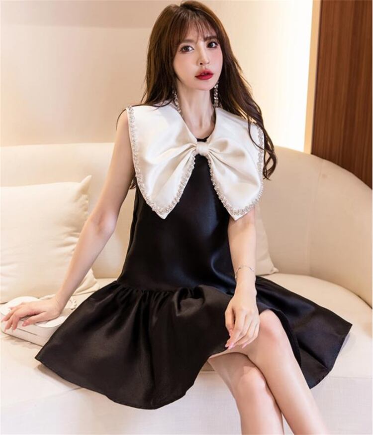 ◎【送料無料】人形の襟 蝶結び フリル 大人気 sweet系 ミニスカート ワンピース エレガント 袖なし