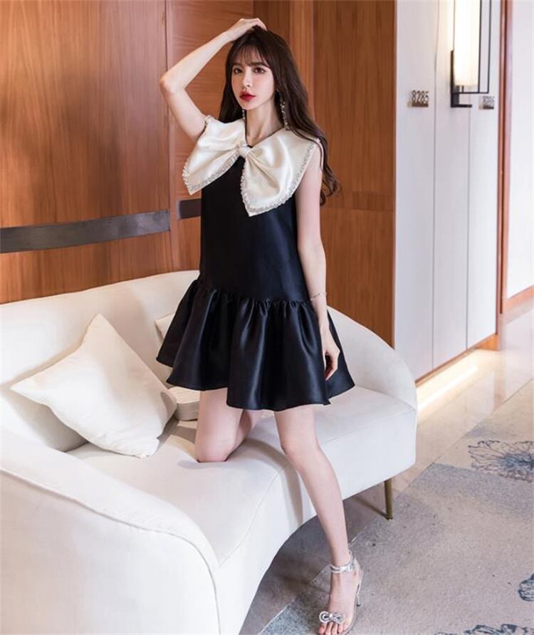人形の襟 蝶結び フリル 大人気 sweet系 ミニスカート ワンピース エレガント 袖なし