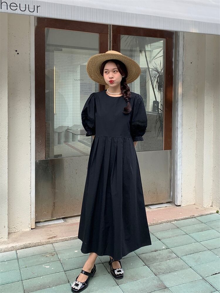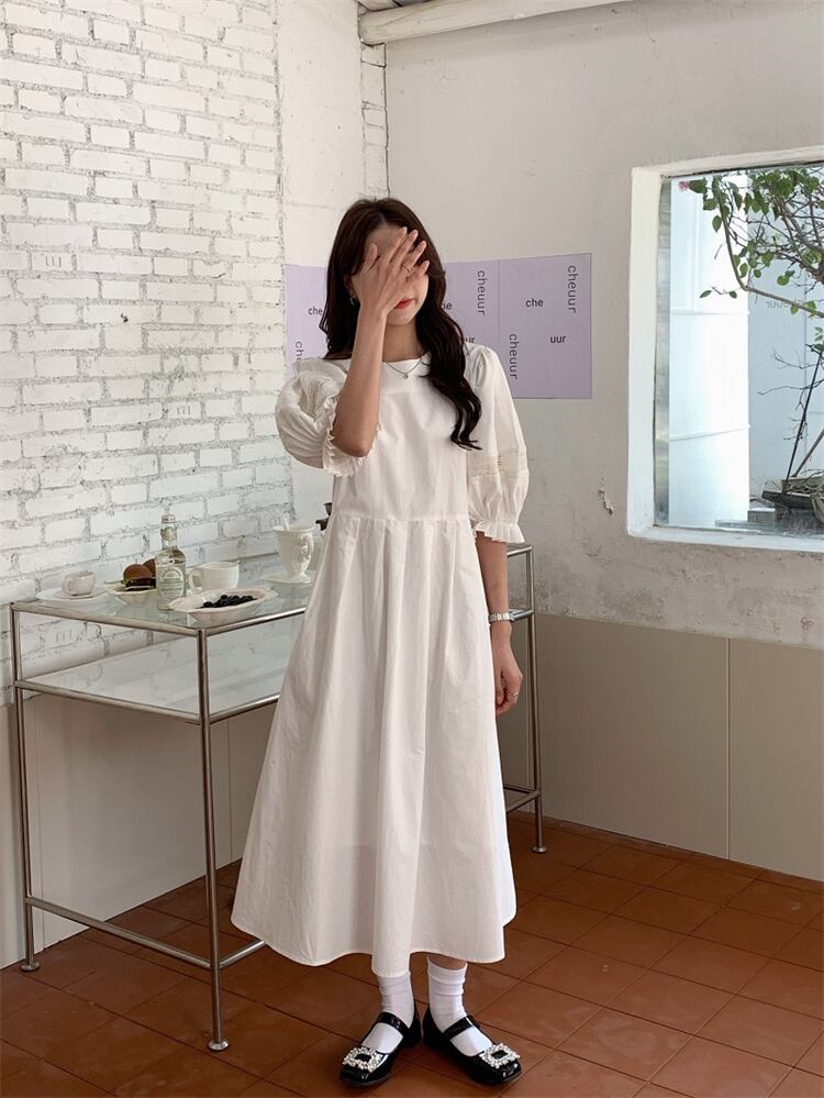 ◎【送料無料】ロングスカート スリム 半袖 大人気 縫付 ランタンスリーブ 受け取って腰
