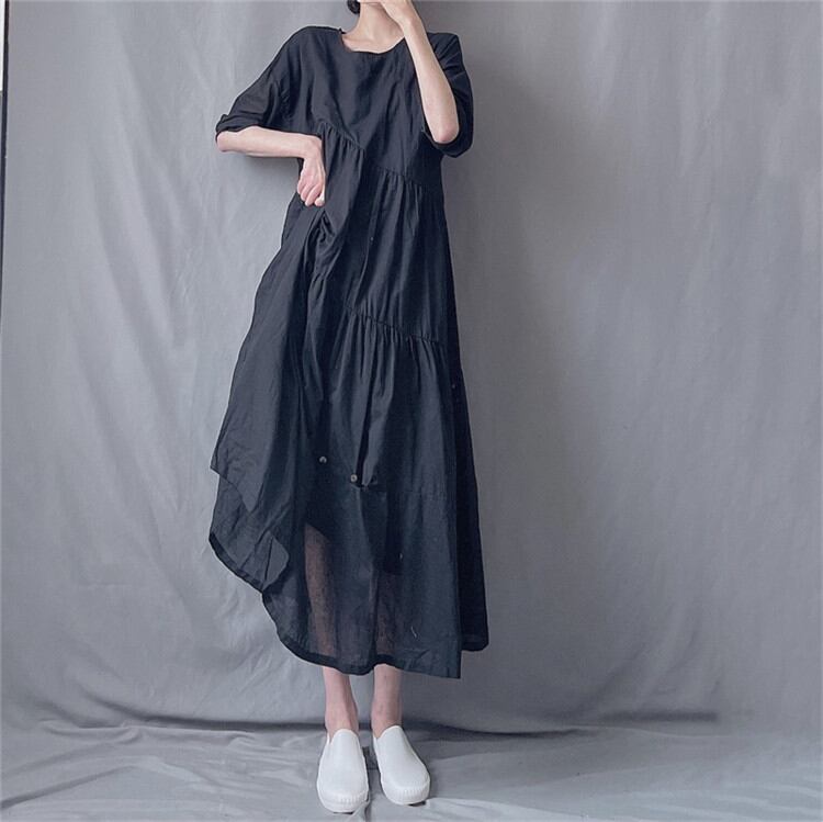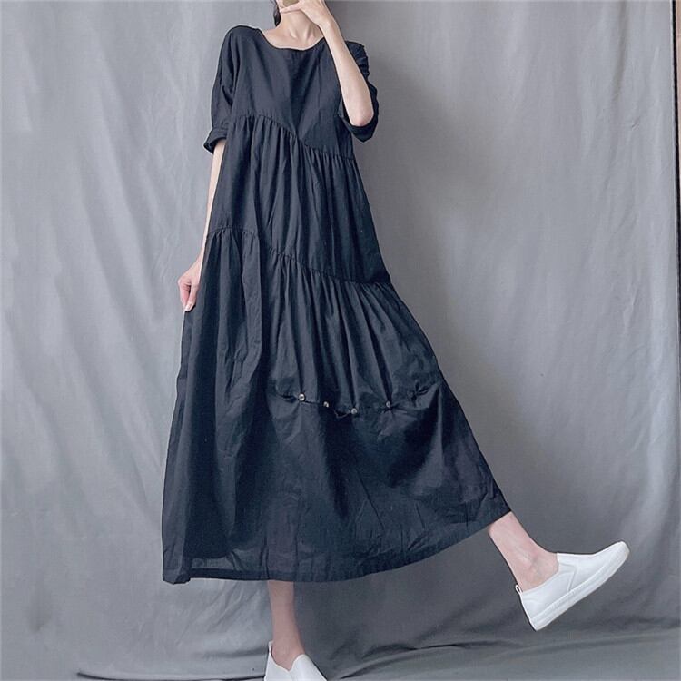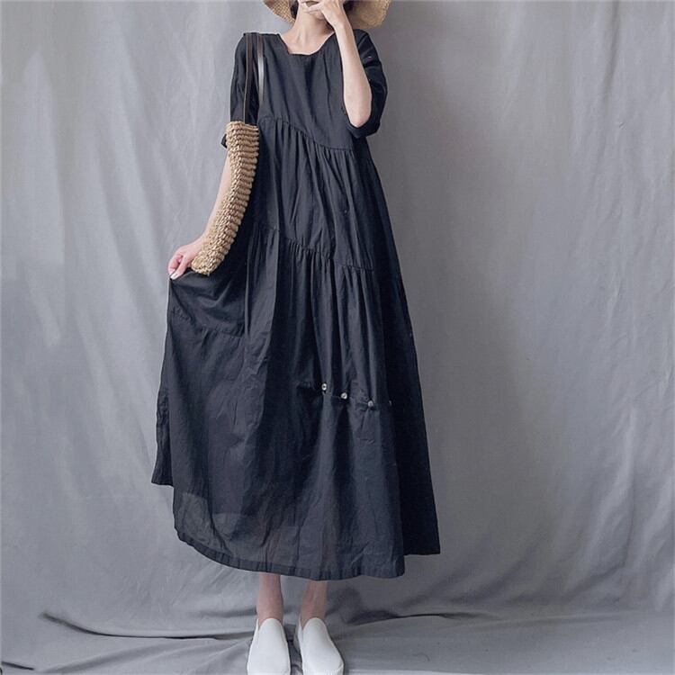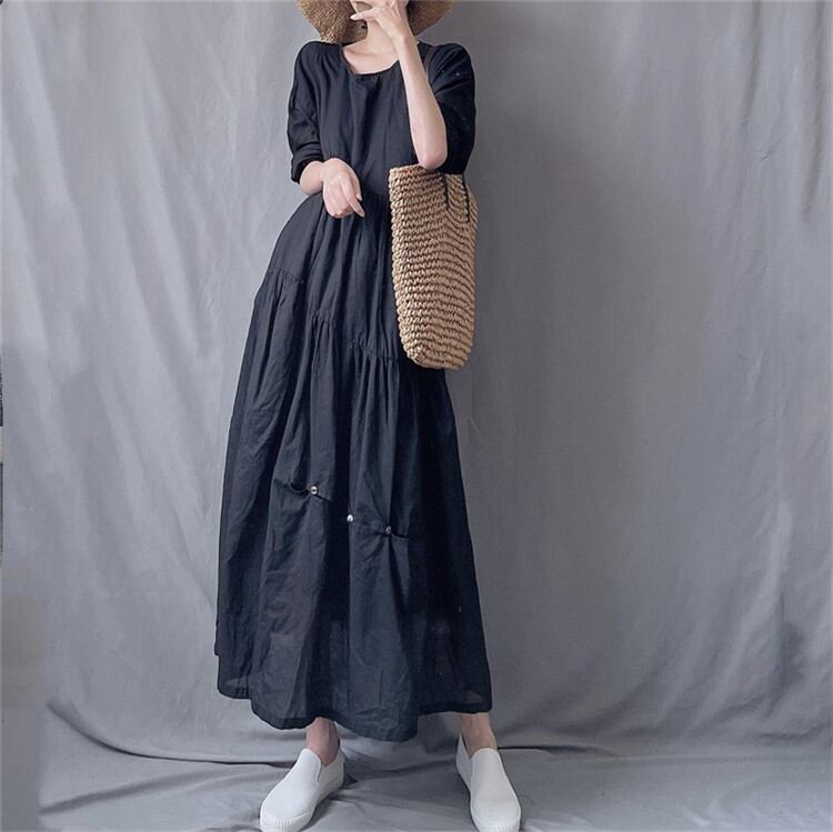 ◎【送料無料】ゆったりする ロングスカート ワンピース 気質 シンプル レトロ ラウンドネック