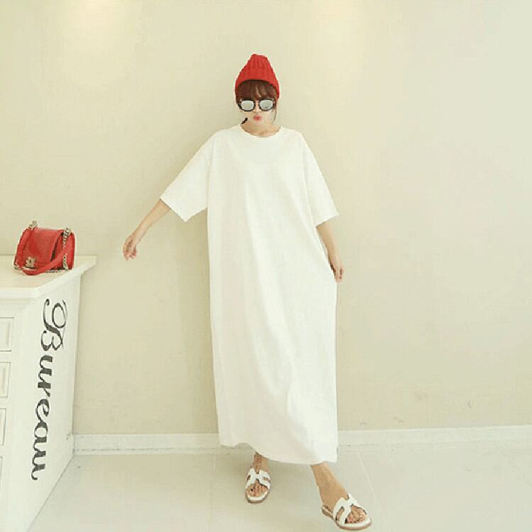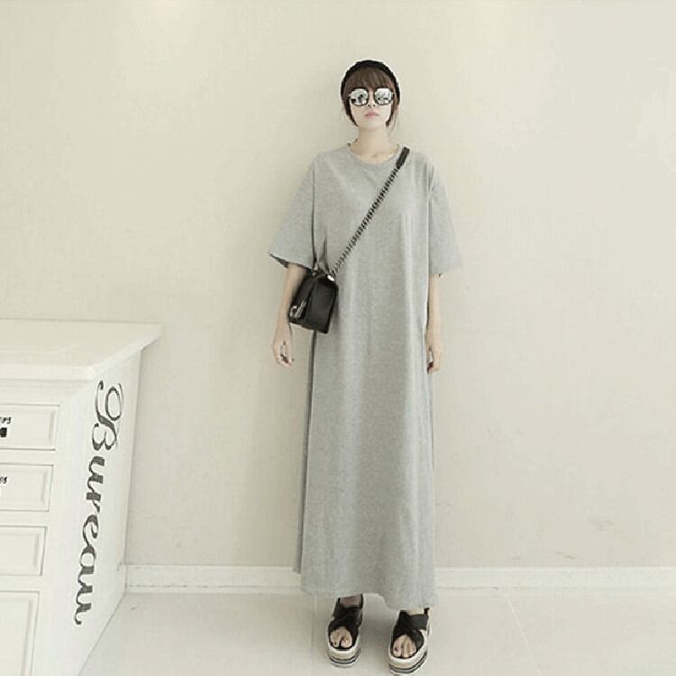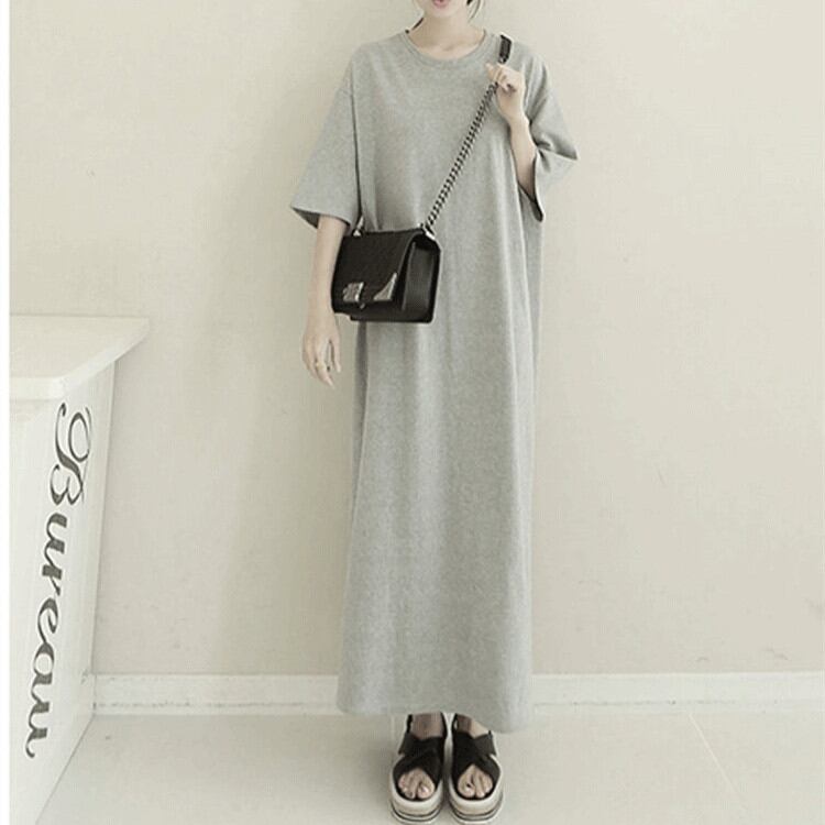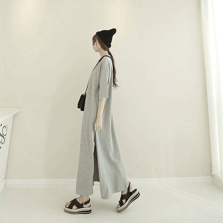 ◎【送料無料】春夏 ワンピース レディース スプリット スリム 半袖 綿 Tシャツ ゆったりする