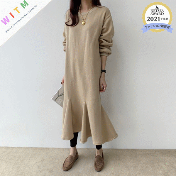 ◎【送料無料】2022春新作 マーメイド ワンピース ロングワンピース 裏起毛 レディース 体型カバー 着痩せ 秋