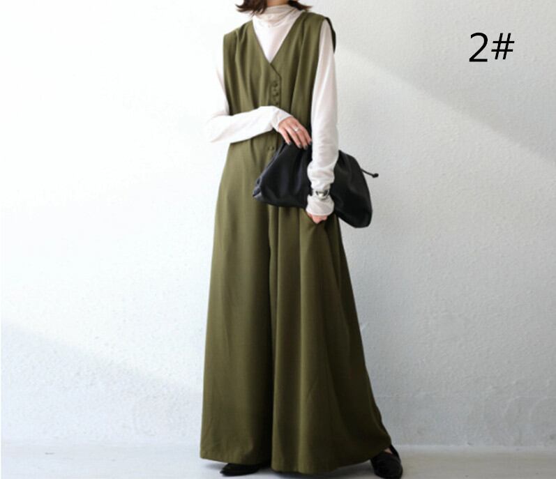 ◎【送料無料】2022春夏新作 サロペットパンツ ロング丈パンツ ワイドパンツ マキシ丈 レディース 体型カバー カジュアル