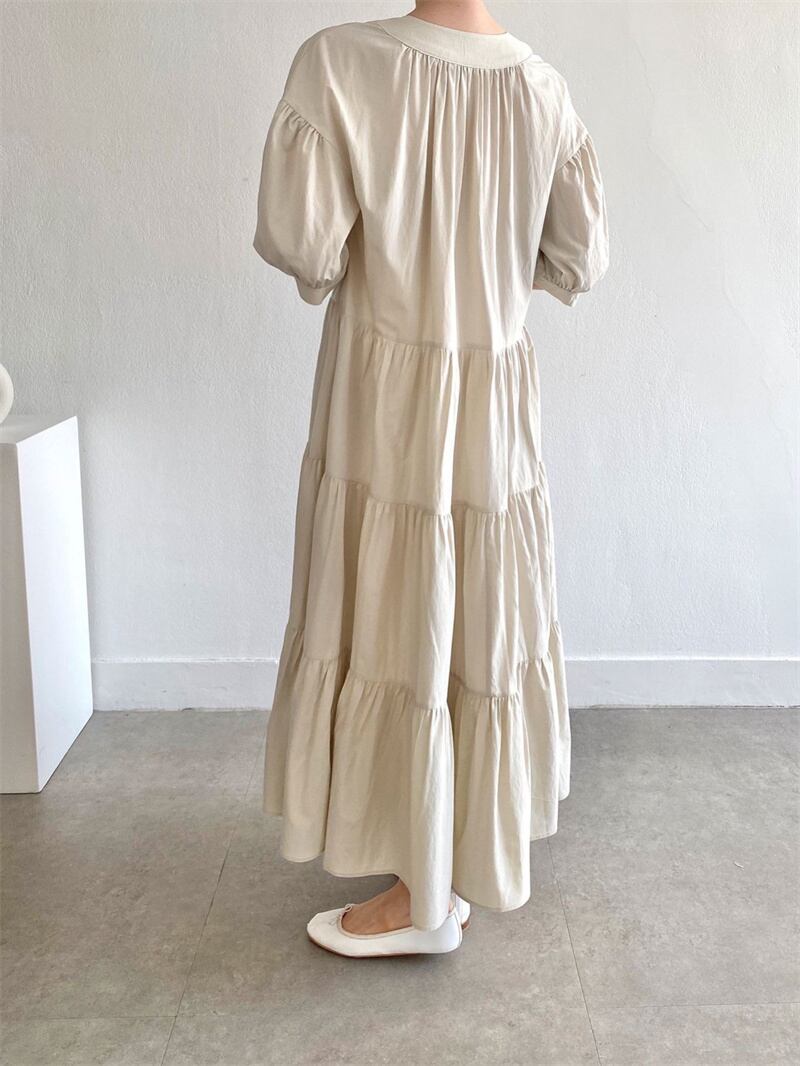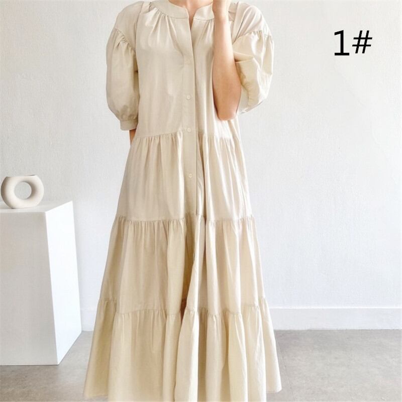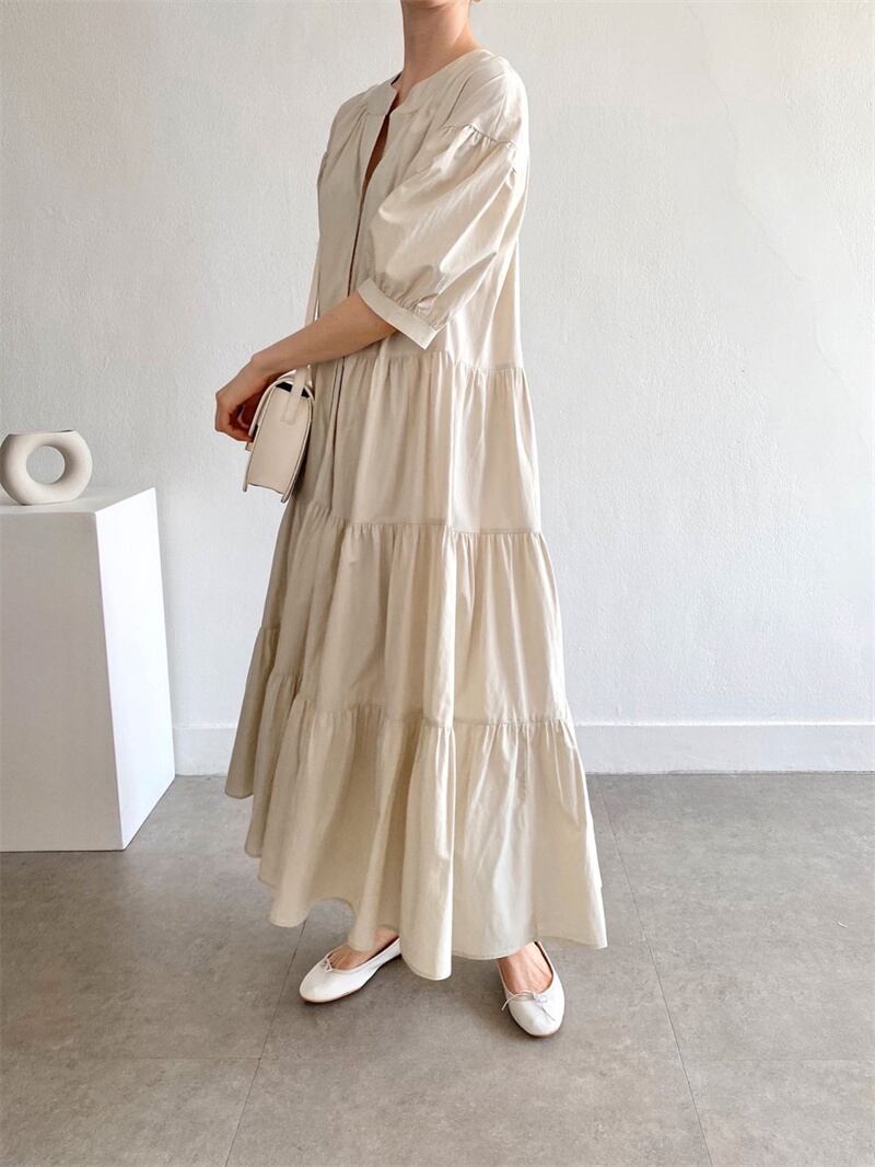 ◎【送料無料】2022春夏新作 フリルワンピース ロング丈ワンピース フレア 韓国風 レディース 体型カバー シンプル