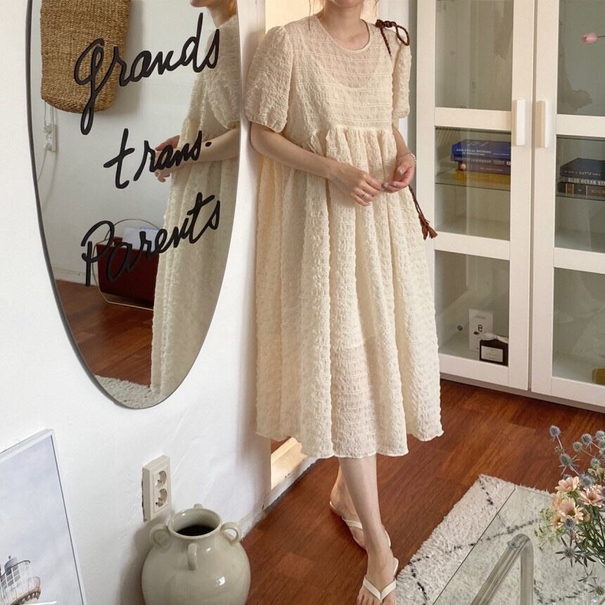 ◎【送料無料】2022春夏新作 ワンピース ロング丈ワンピース フリル 韓国風 レディース Aライン シンプル