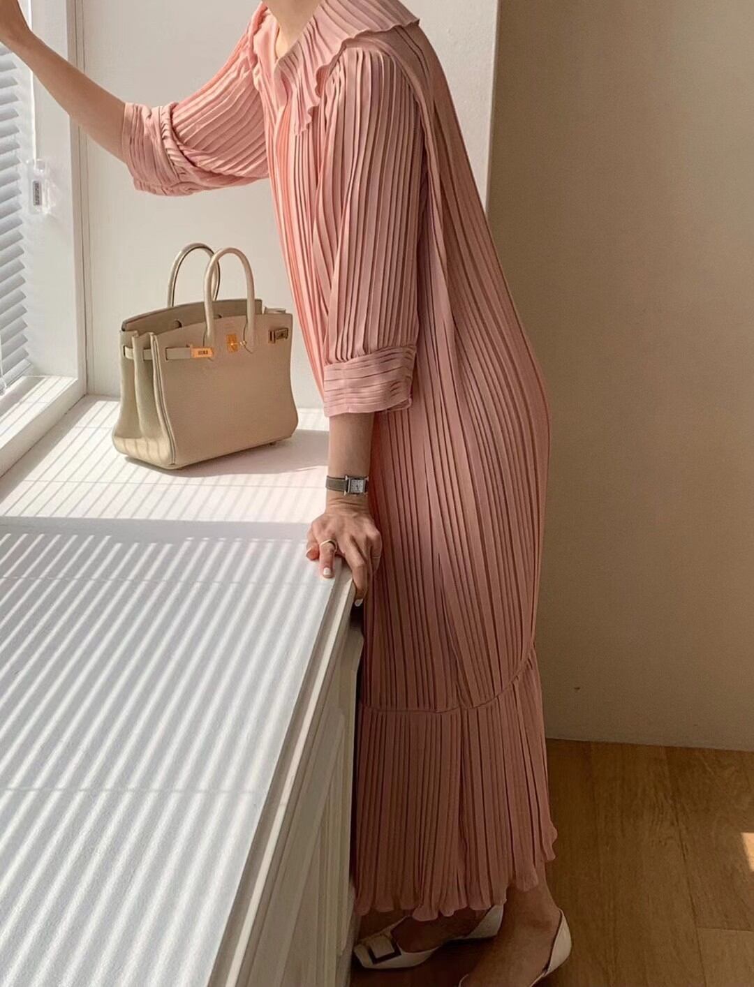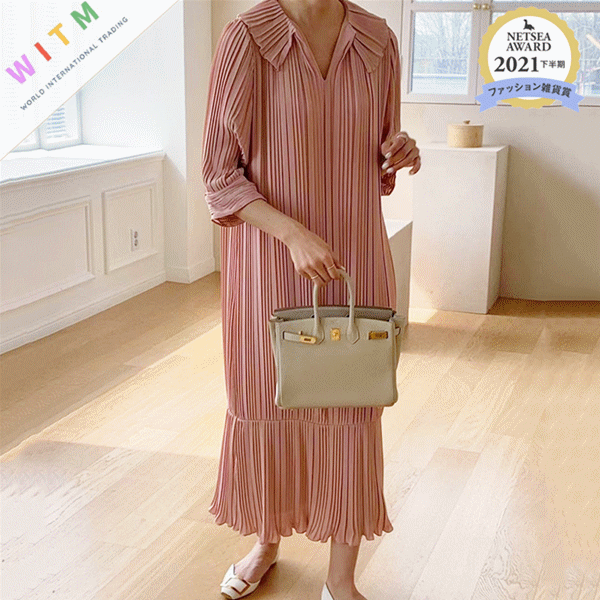 ◎【送料無料】2022春新作 ワンピース ロングワンピース マーメイド プリーツ レディース 体型カバー 着痩せ