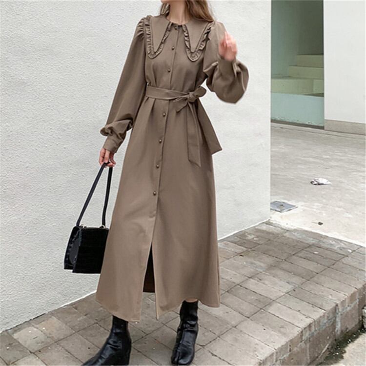 受け取って腰 長袖 ロングスカート 大人気 中・長セクション ワンピース ベルト付き