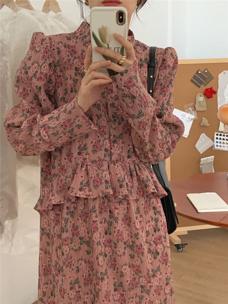 中・長セクション 長袖 ワンピース レディース 大人気 ファッション 牧歌的なスタイル