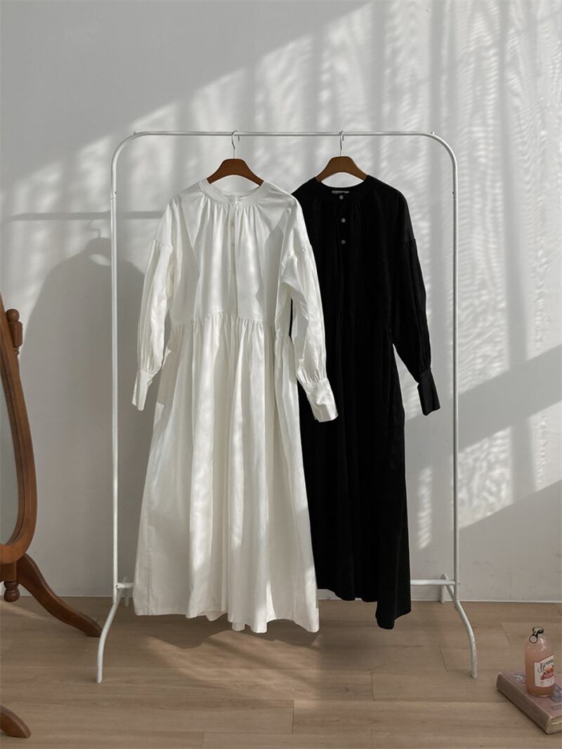 ◎【送料無料】2022春新作 ワンピース ロング丈ワンピース パフスリーブ レディース Aライン 韓国風 体型カバー